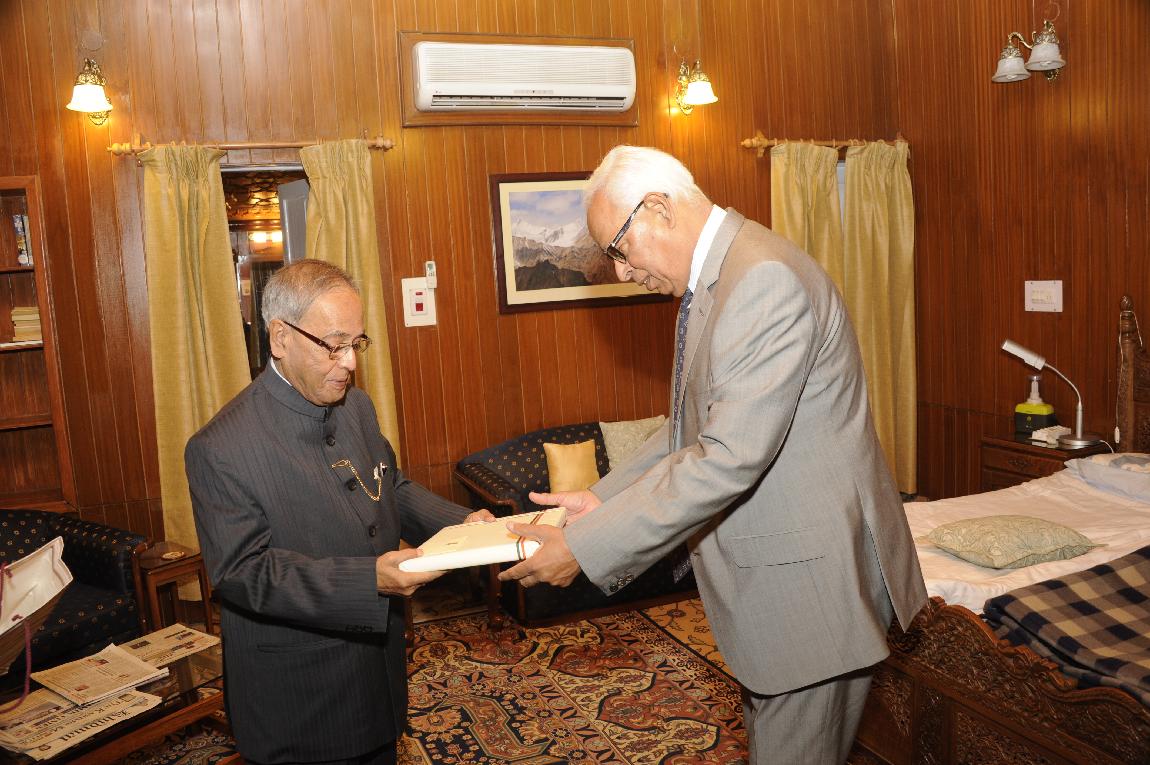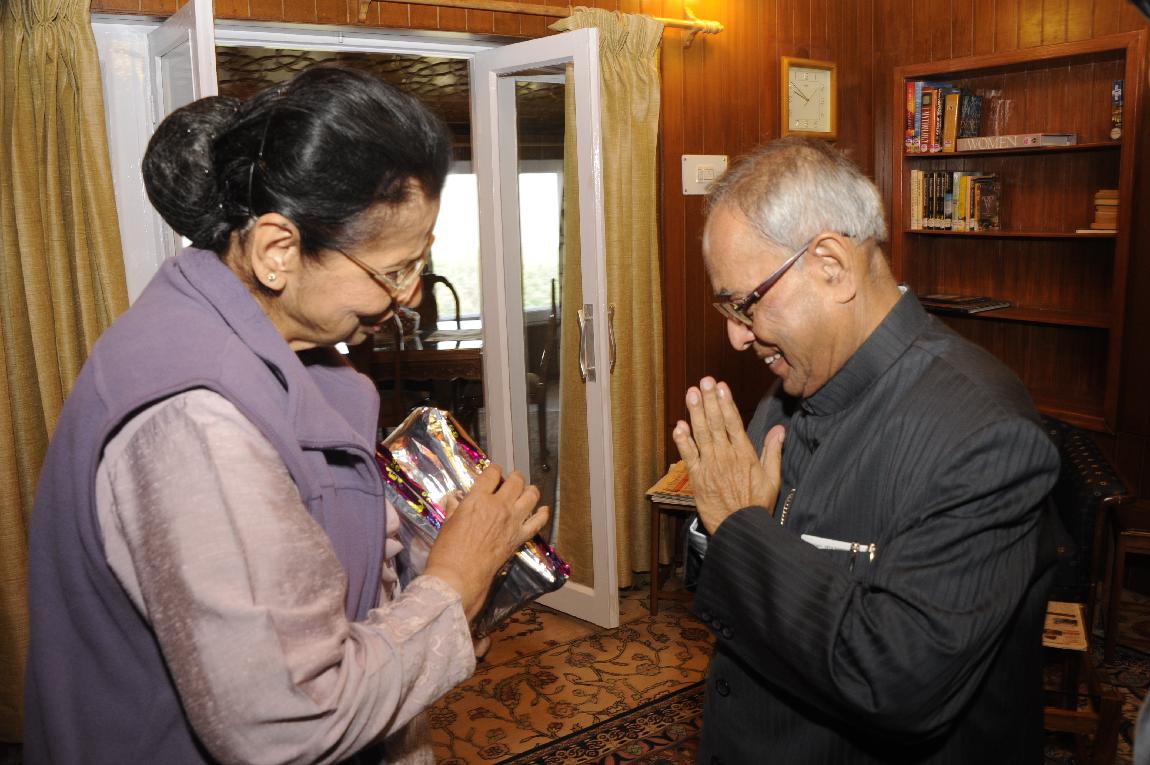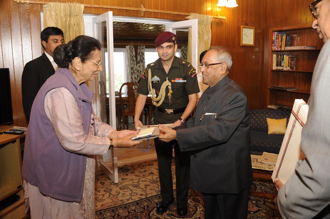 The President of India, Shri Pranab Mukherjee Exchanging Gifts with Governor on Sep 28, 2012