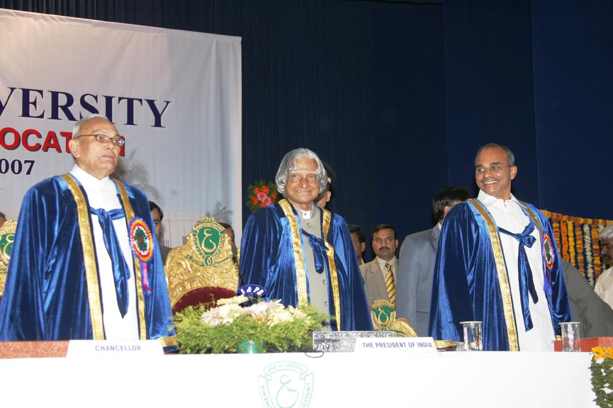 | Caption: | The President of India, Dr A P J Abdul Kalam at the 77th Annual Convocation of Osmania University at Hyderabad in Andhra Pradesh on Feb 01, 2007 |