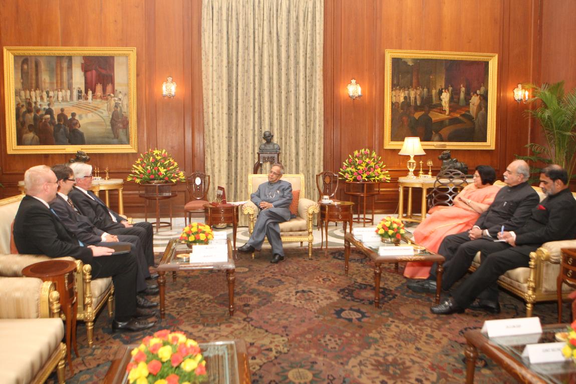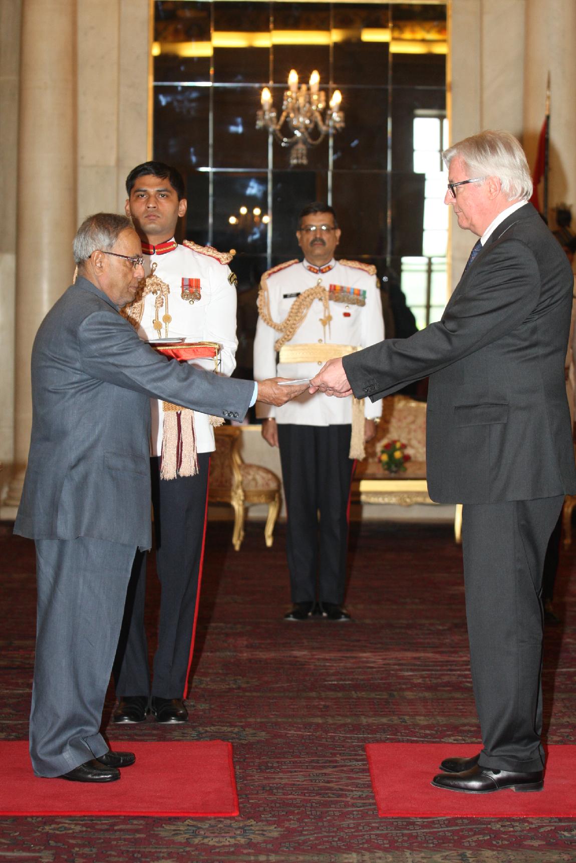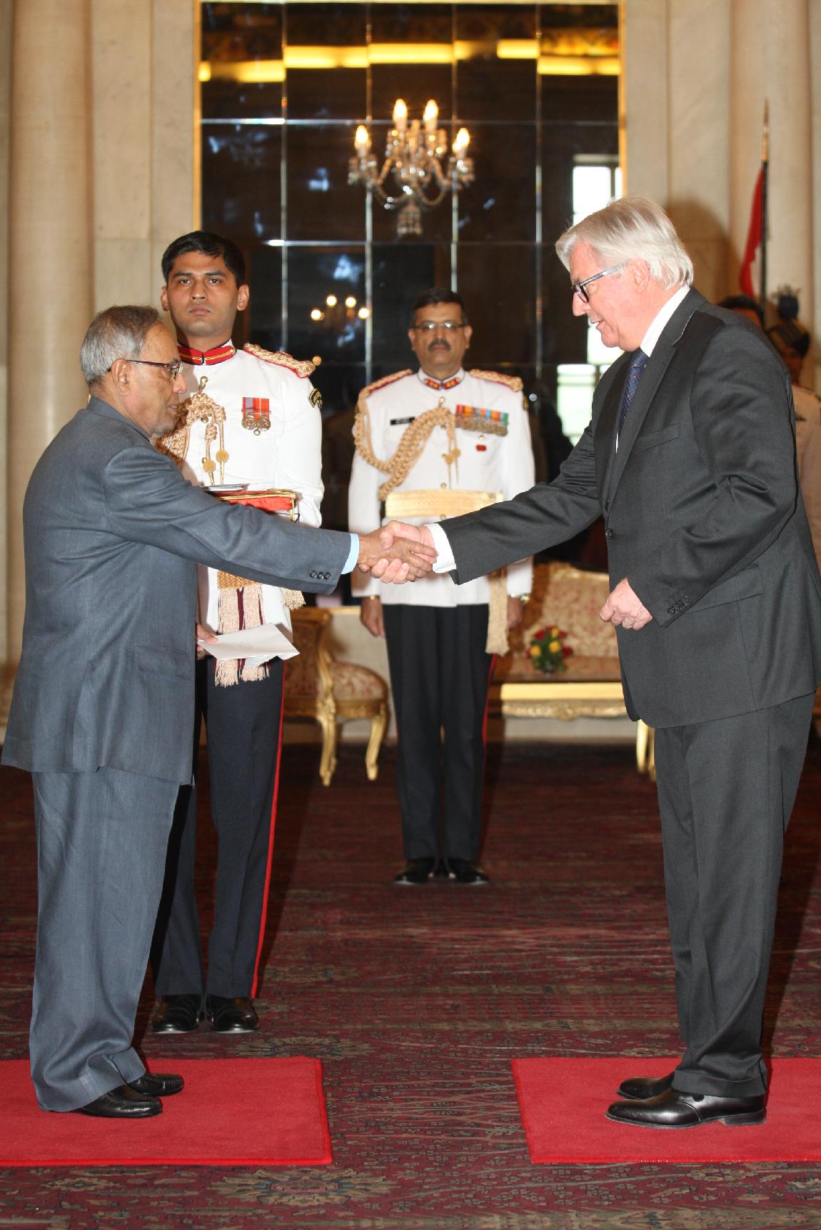 | Caption: | HE Mr Aapo Polho, from Ambassador-designate of The Republic of Finland presenting his credentials to The President of India, Shri Pranab Mukherjee at Rashtrapati Bhavan on May 28,2013 |