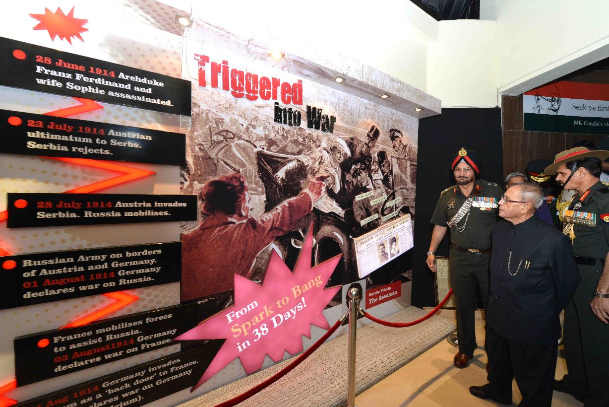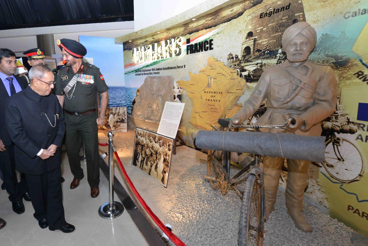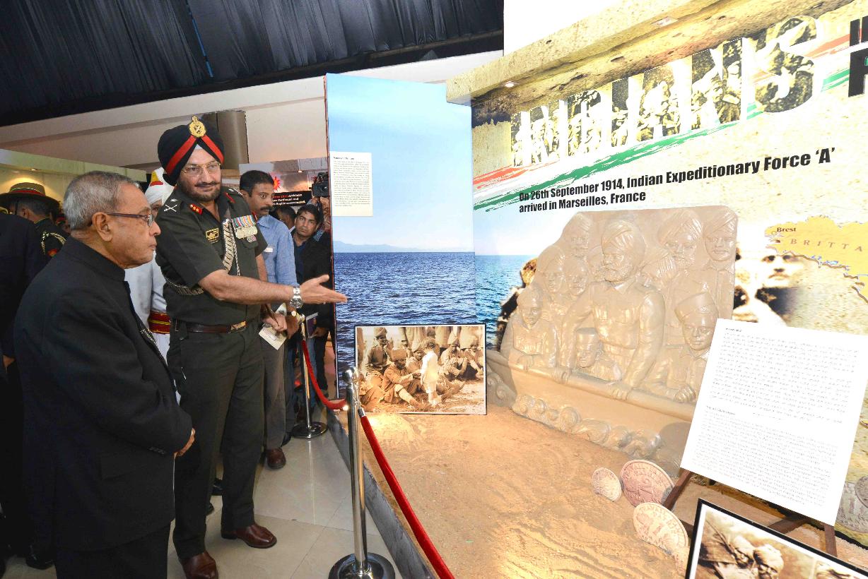 | Caption: | The President of India, Shri Pranab Mukherjee inaugurating the commemorative exhibition on the theme "India and World War - I", at Manekshaw Centre, in New Delhi on March 10, 2015. |