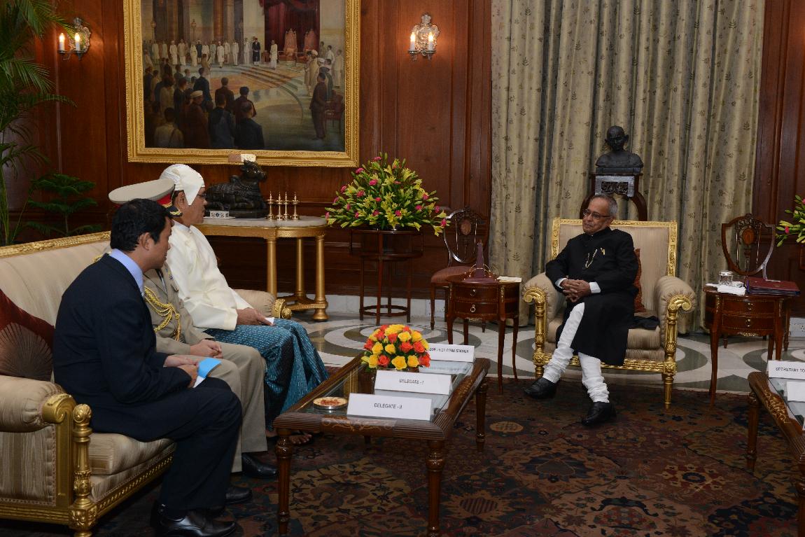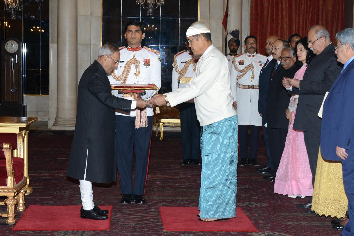 | Caption: | HE U Aung Khin Soe, from Ambassador-Designate of The Republic of The Union of Myanmar, presenting his credentials to The President of India, Shri Pranab Mukherjee, at Rashtrapati Bhavan on July 17,2013 |