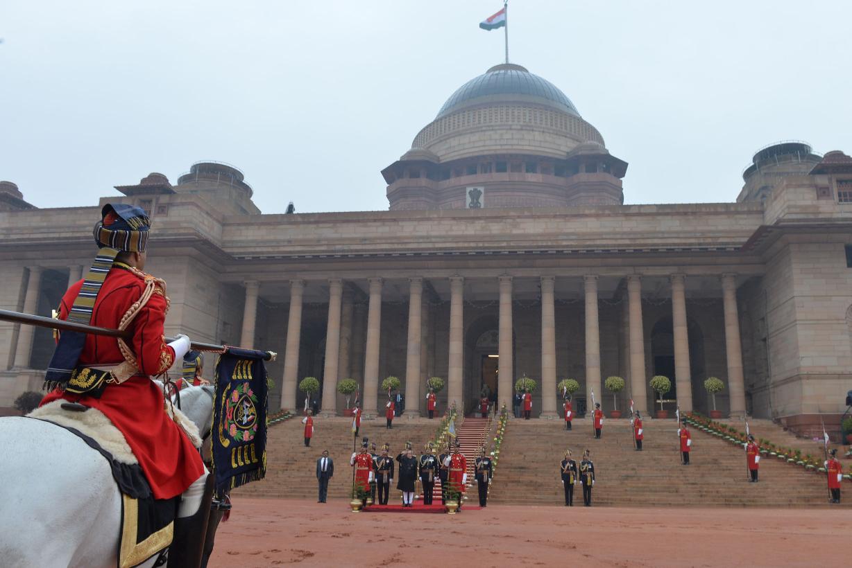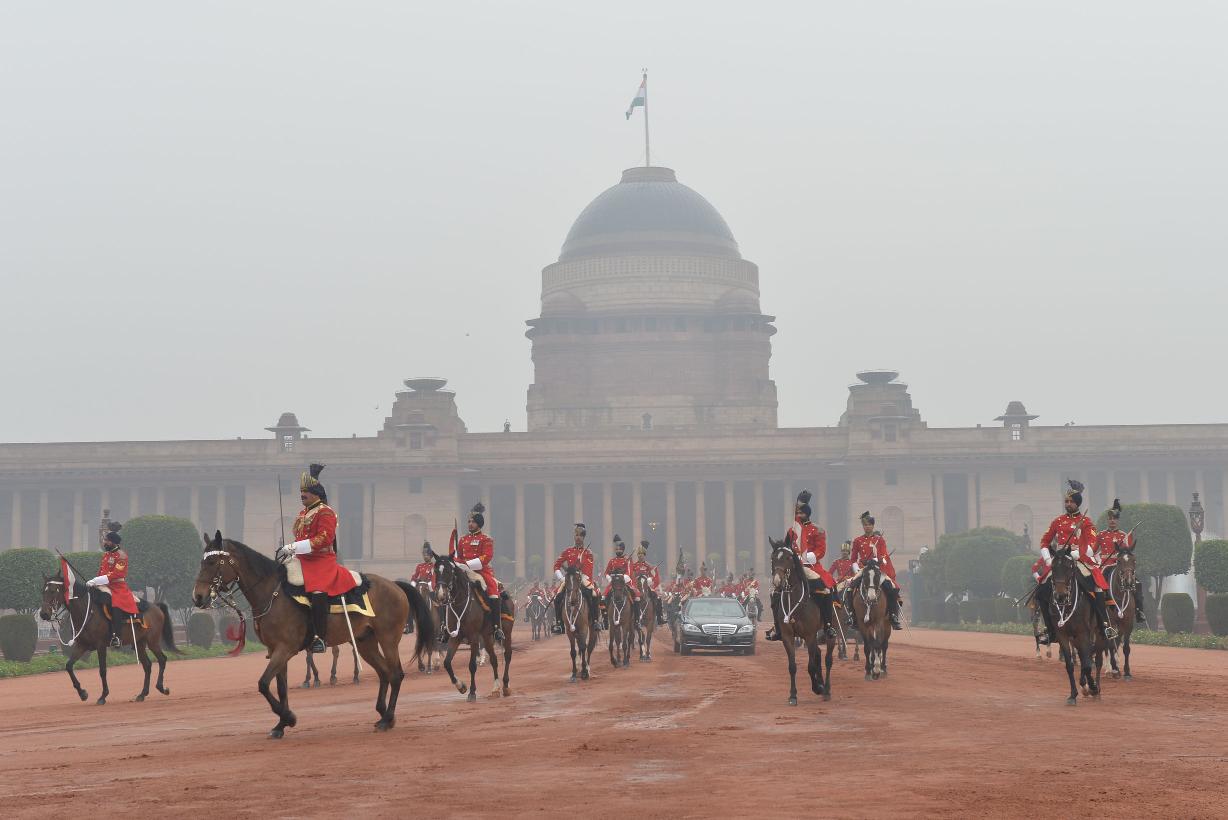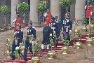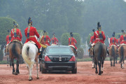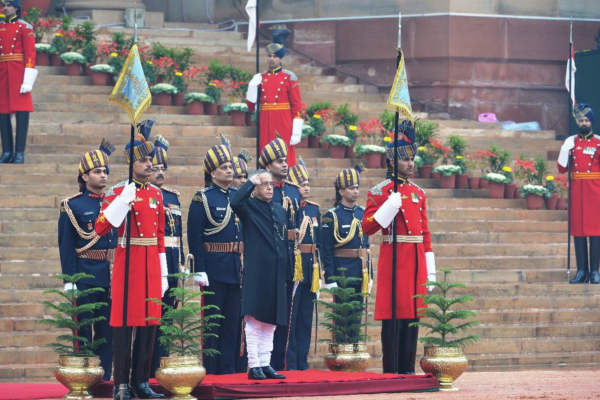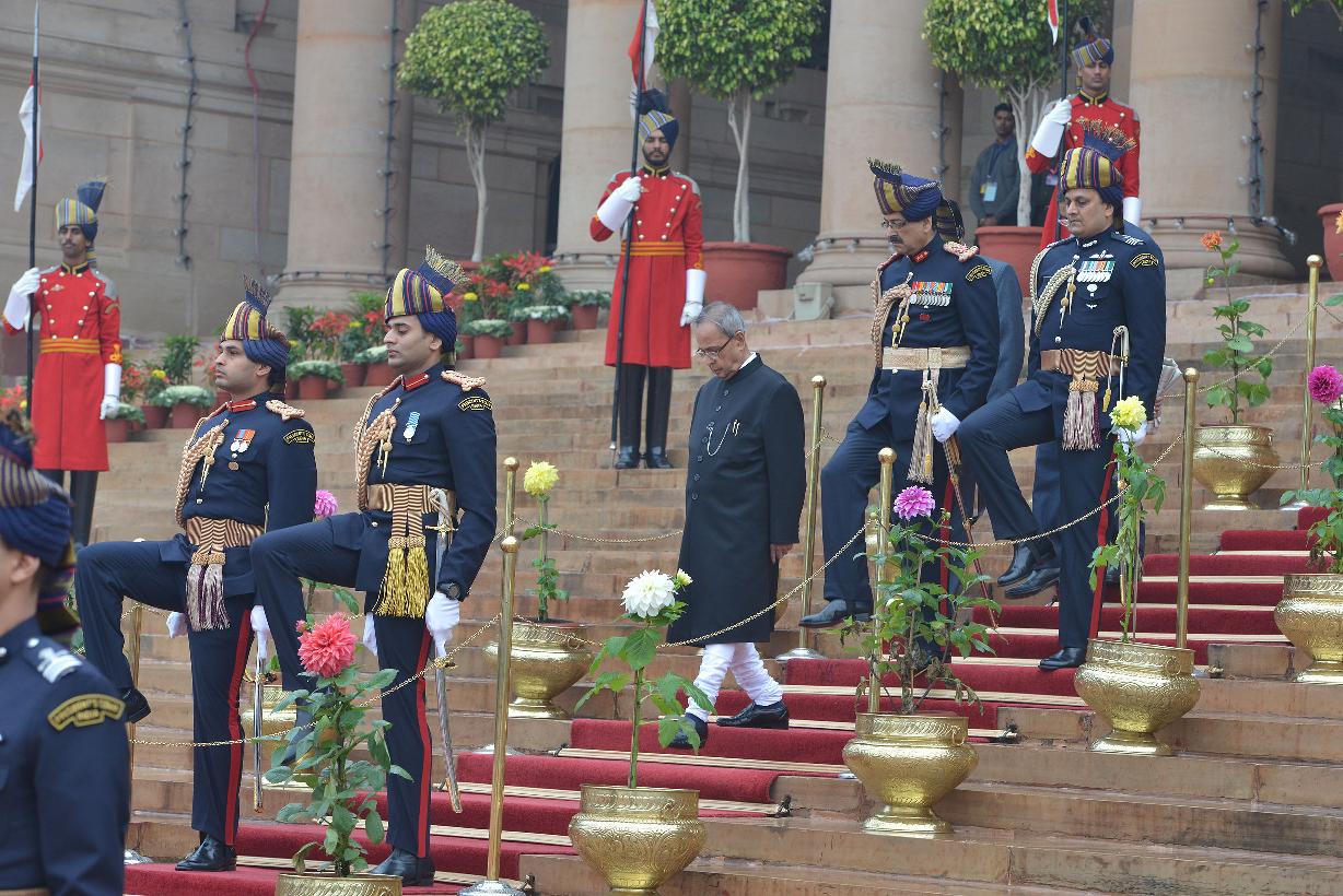 | Caption: | The President of India Shri Pranab Mukherjee taking the salute during departure at the Forecourt of Rashtrapati Bhavan for attending the 66th Republic Day Parade at Rajpath, in New Delhi on January 26, 2015 |