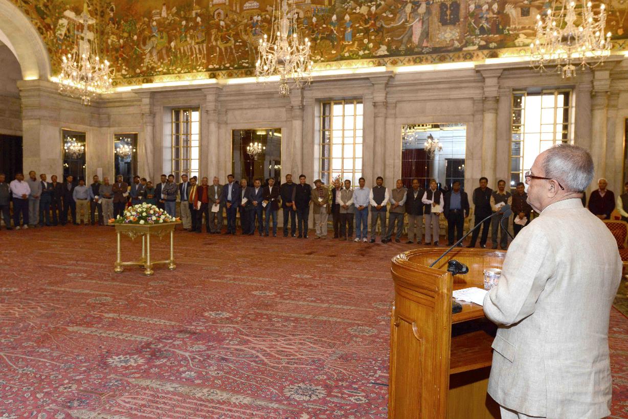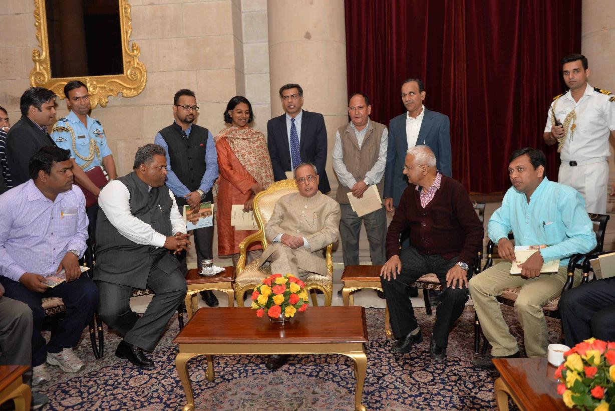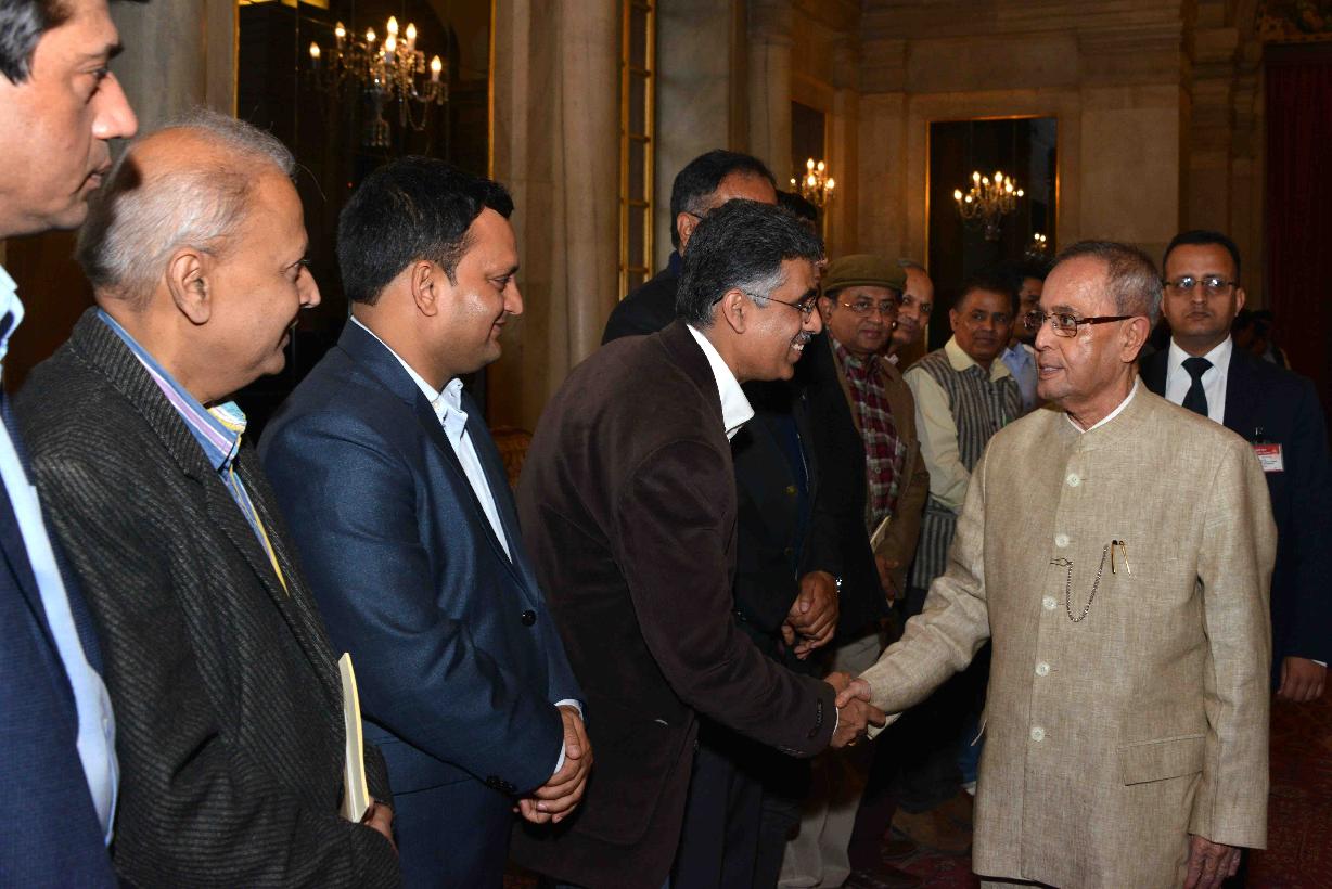 | Caption: | The President of India, Shri Pranab Mukherjee meeting the Members of Press Association, at Rashtrapati Bhavan, in New Delhi on March 11, 2015. |
