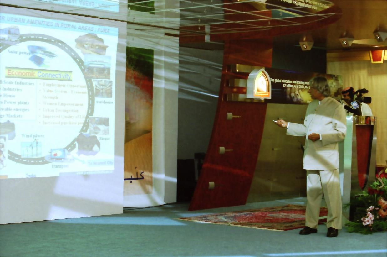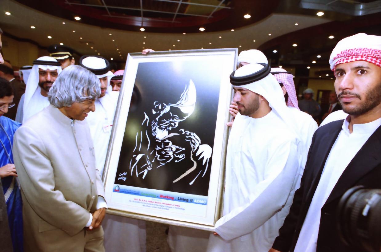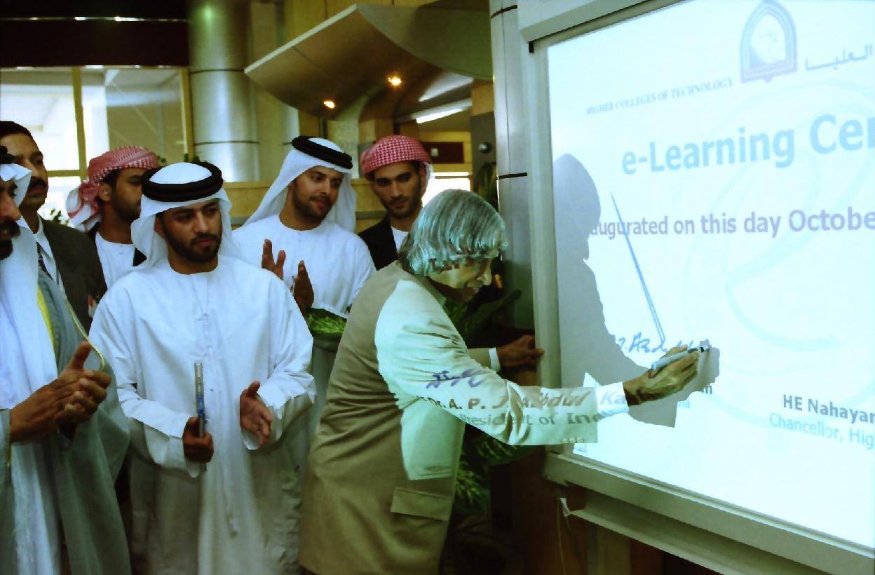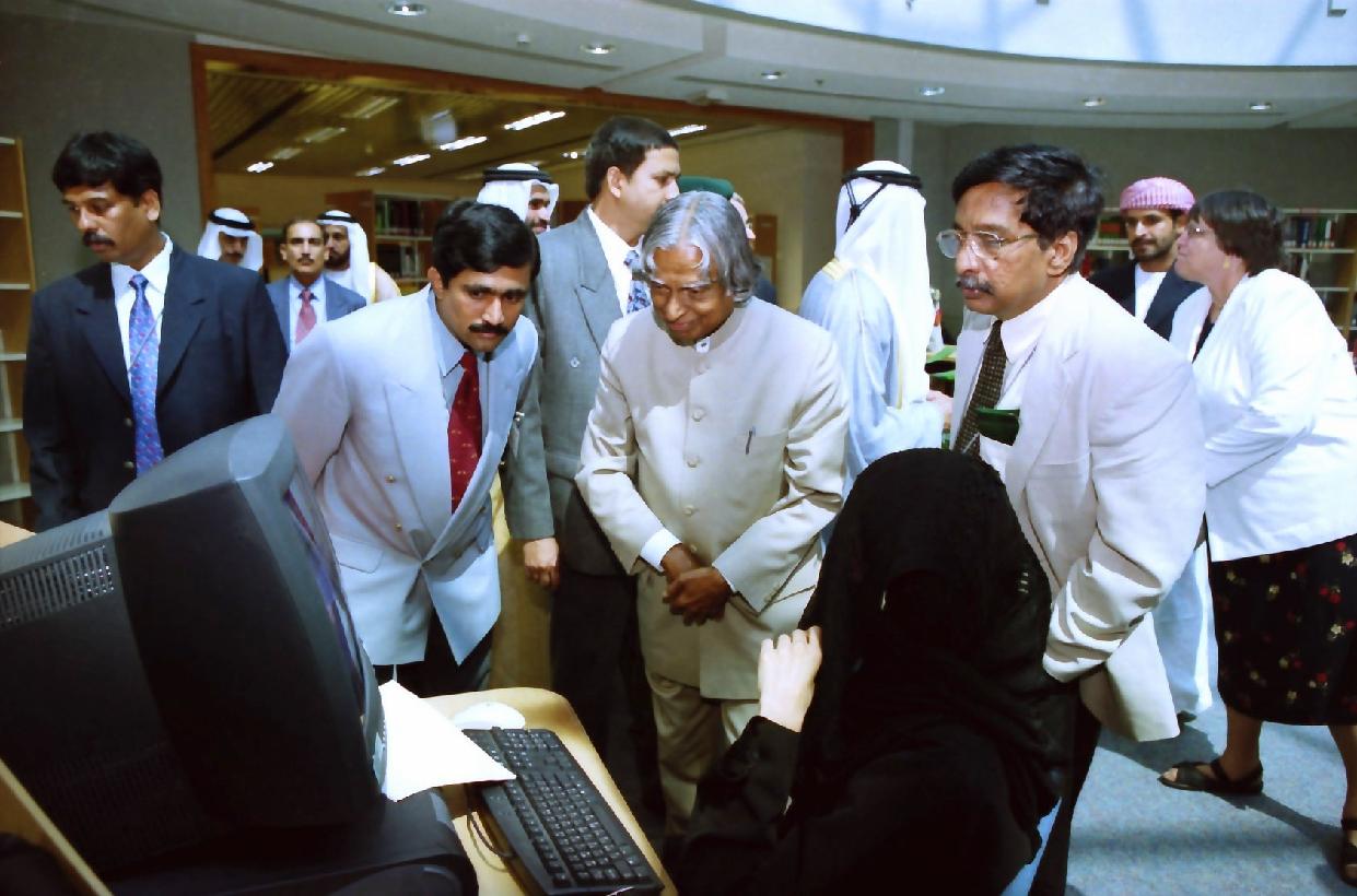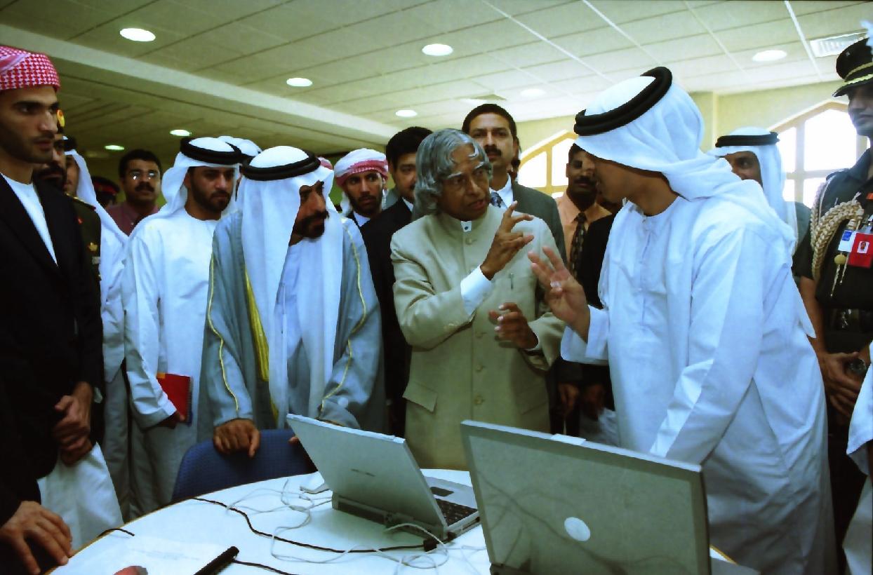 | Caption: | The President of India, Dr A P J Abdul Kalam visiting the Higher College of Technology in United Arab Emirates on Oct 19, 2003 |