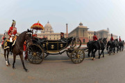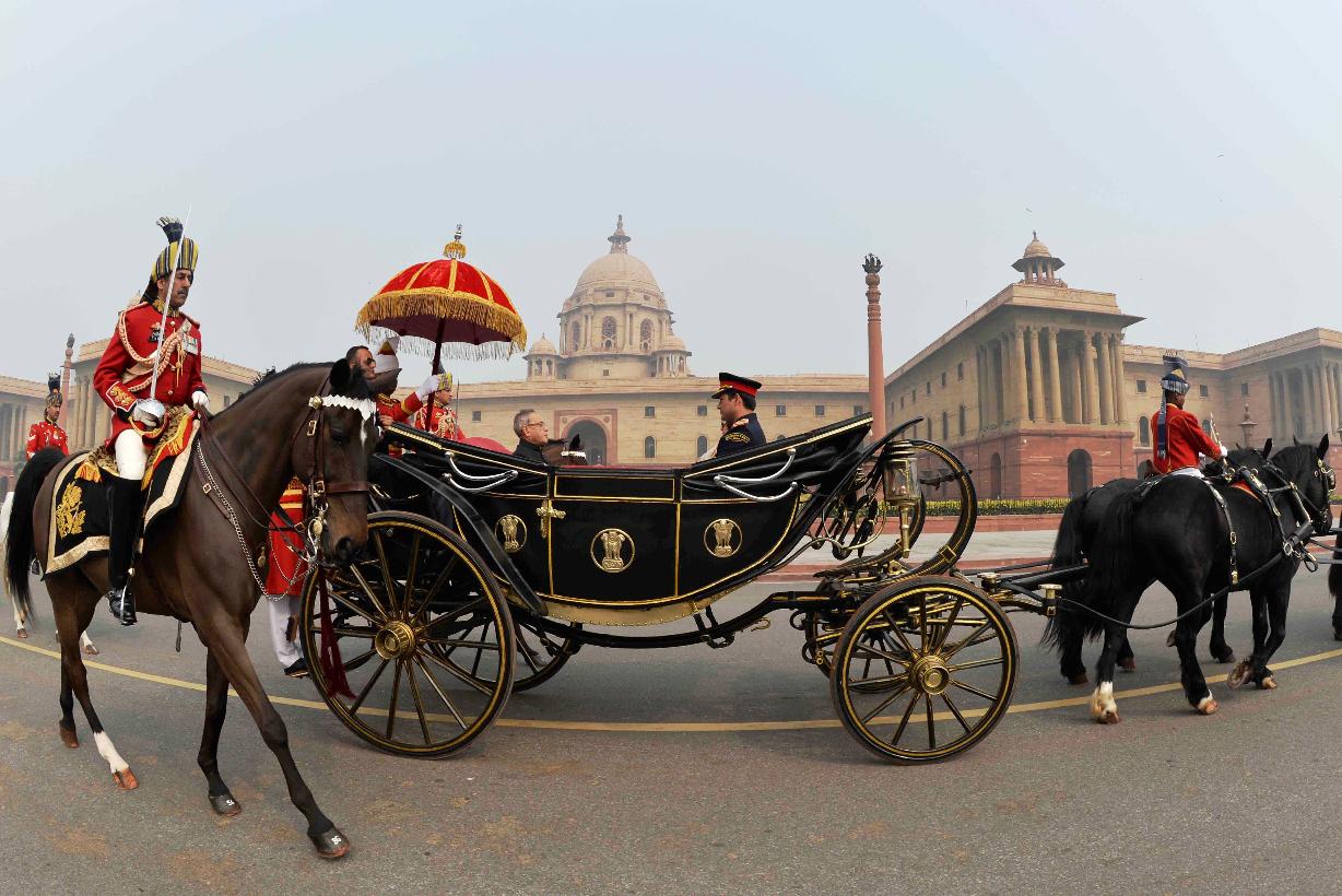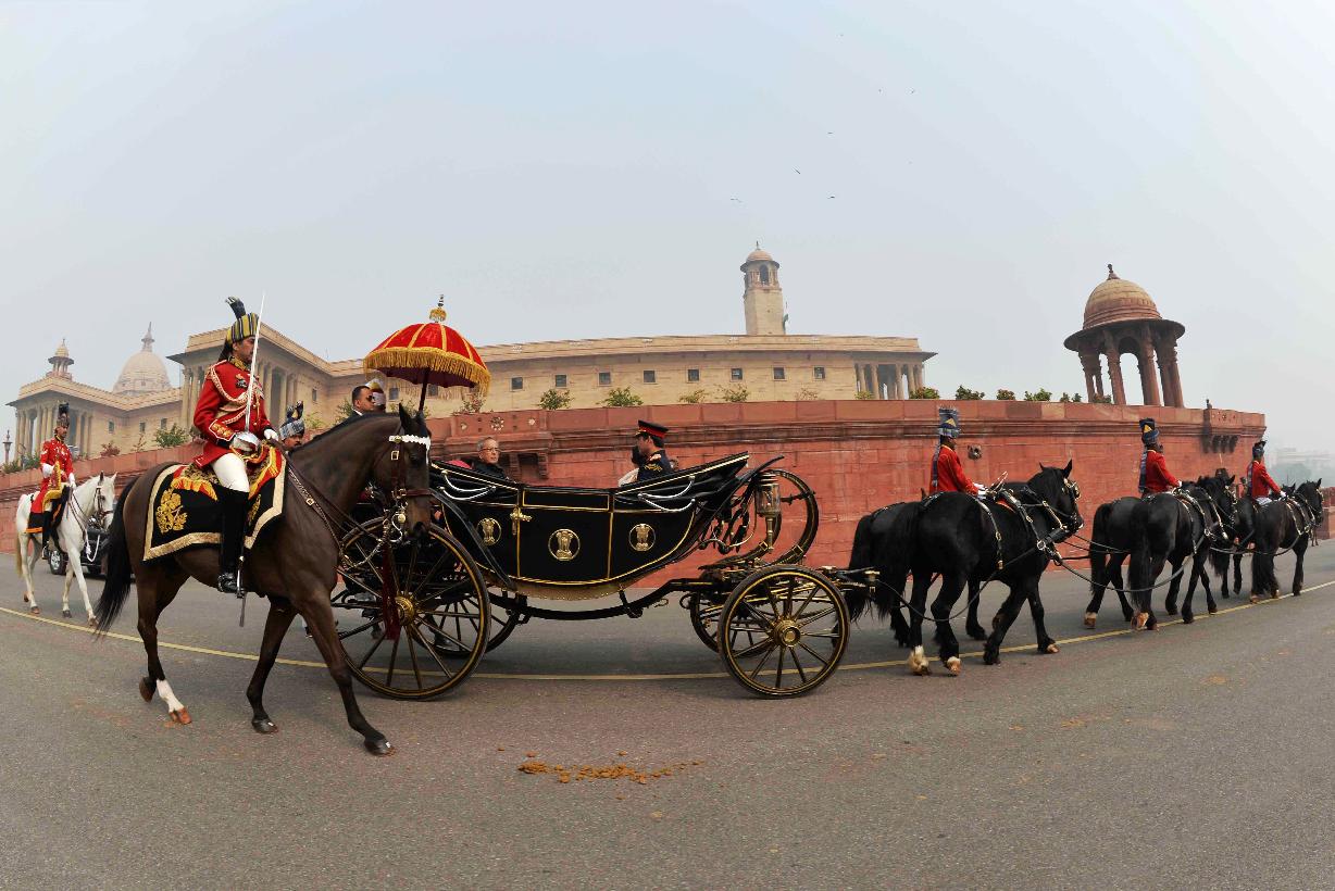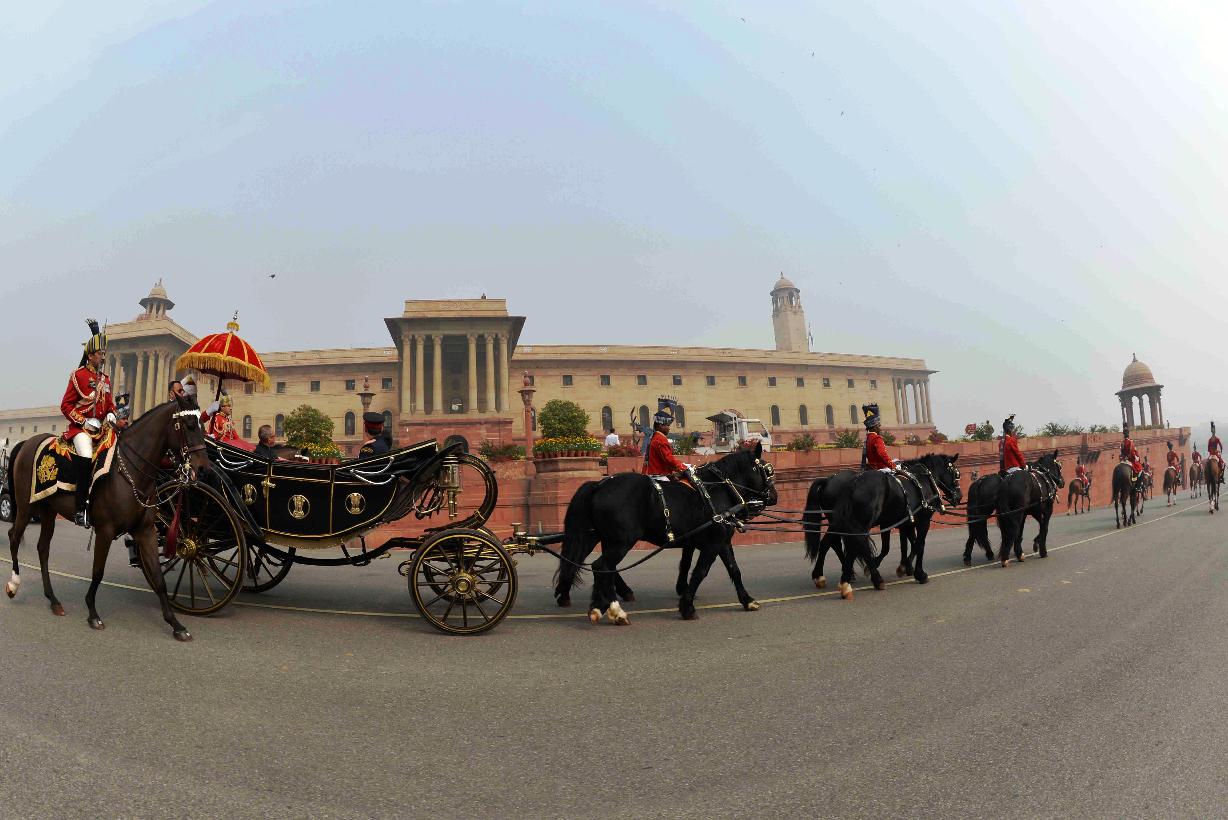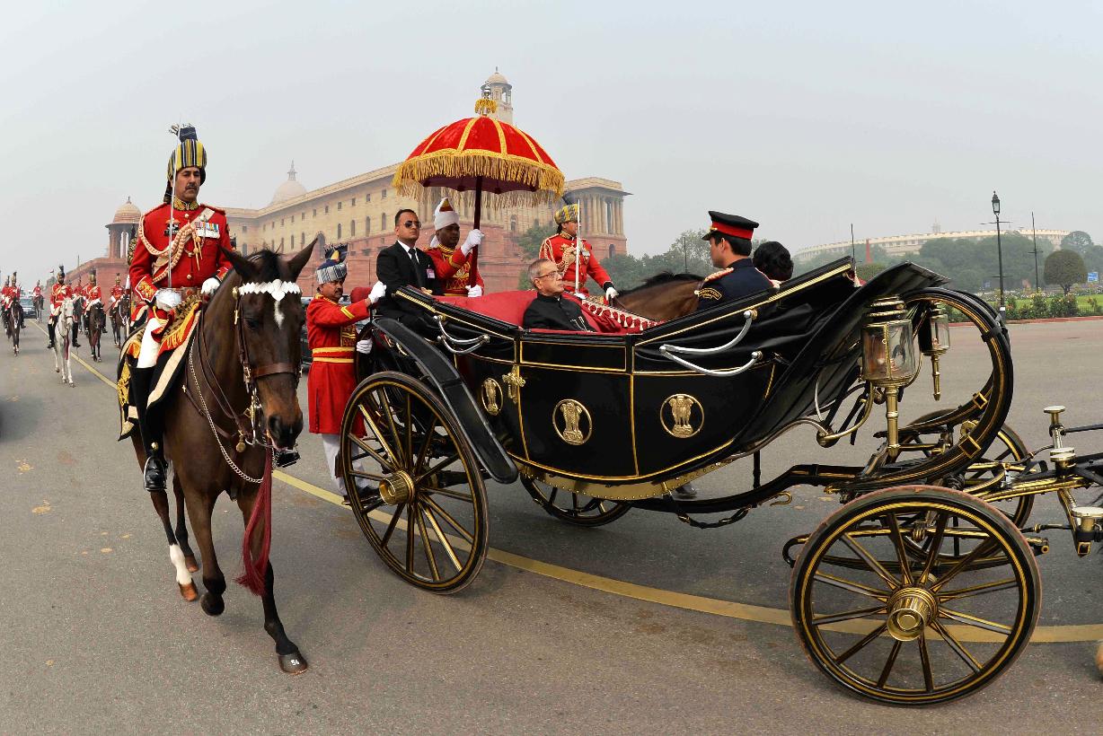 | Caption: | The President of India, Shri Pranab Mukherjee on the way to the Parliament House to address the members of both Houses of Parliament, at Vijay Chowk, in New Delhi on February 23, 2015. |