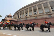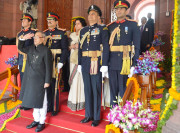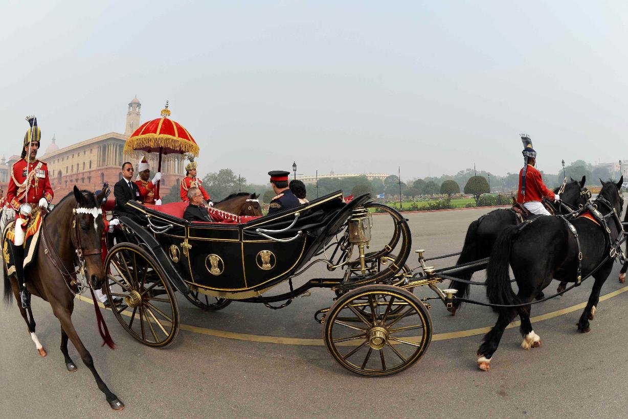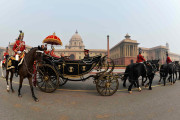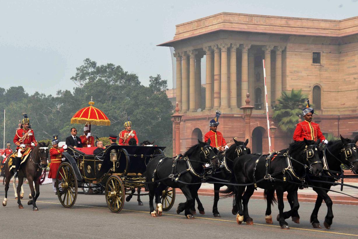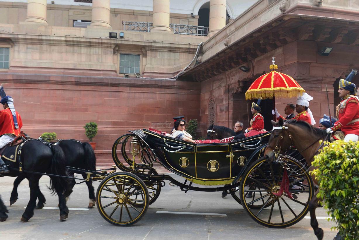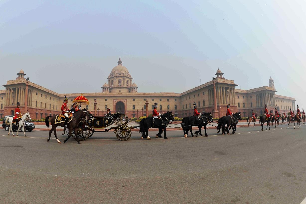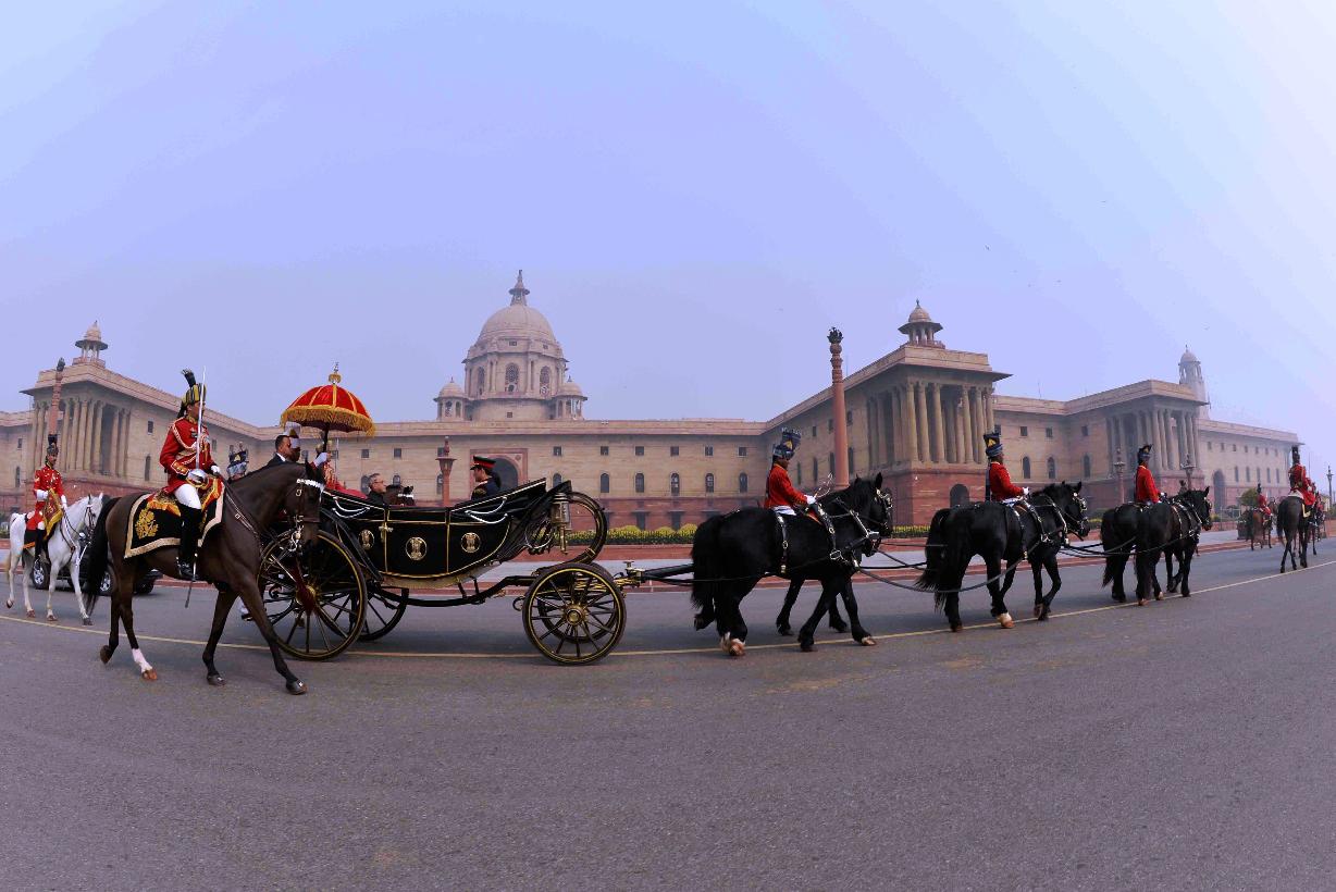 | Caption: | The President of India, Shri Pranab Mukherjee on the way to the Parliament House to address the members of both Houses of Parliament, at Vijay Chowk, in New Delhi on February 23, 2015. |
