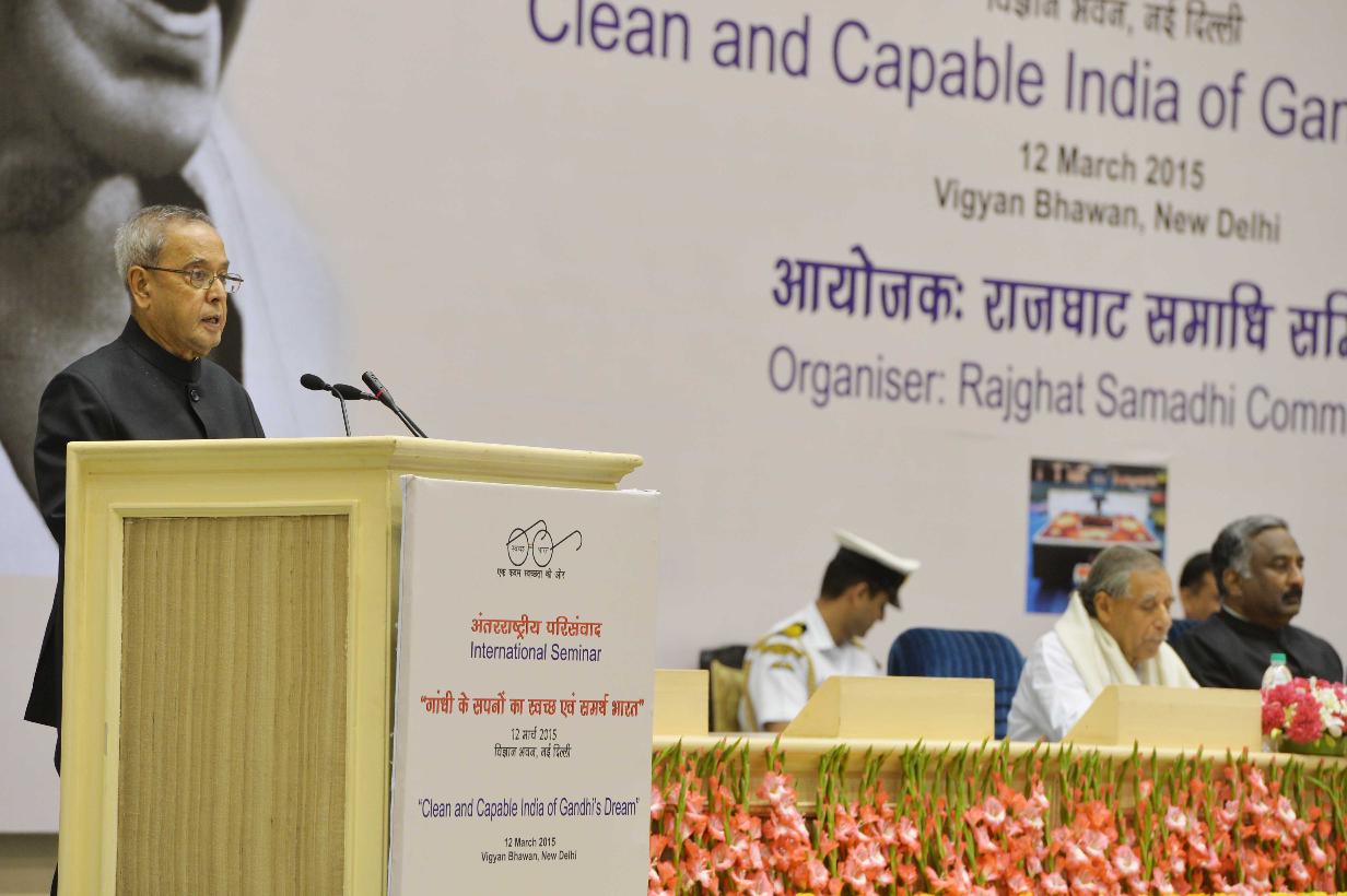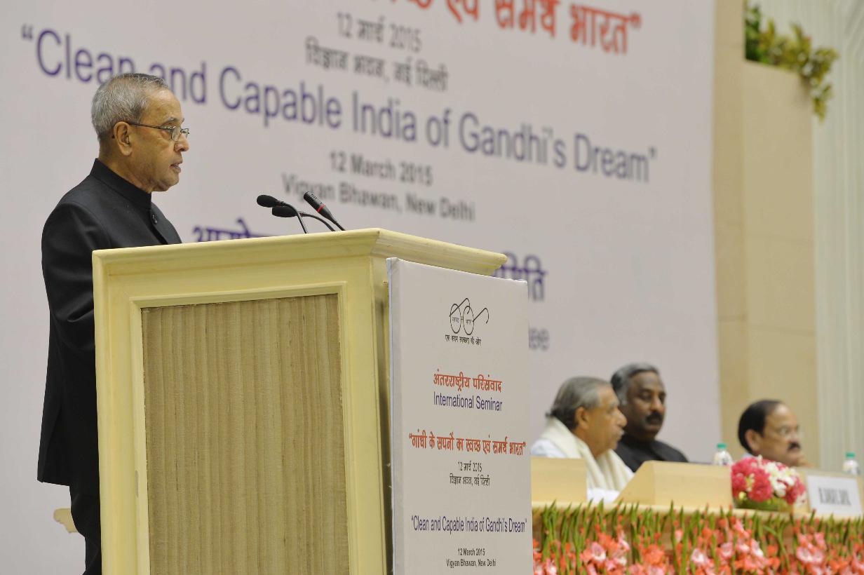 | Caption: | The President of India, Shri Pranab Mukherjee inaugurating the seminar on 'Clean and Capable India of Gandhi's Dream', being organized by the Ministry of Urban Development and Rajghat Samadhi Committee, in New Delhi on March 12, 2015. |
