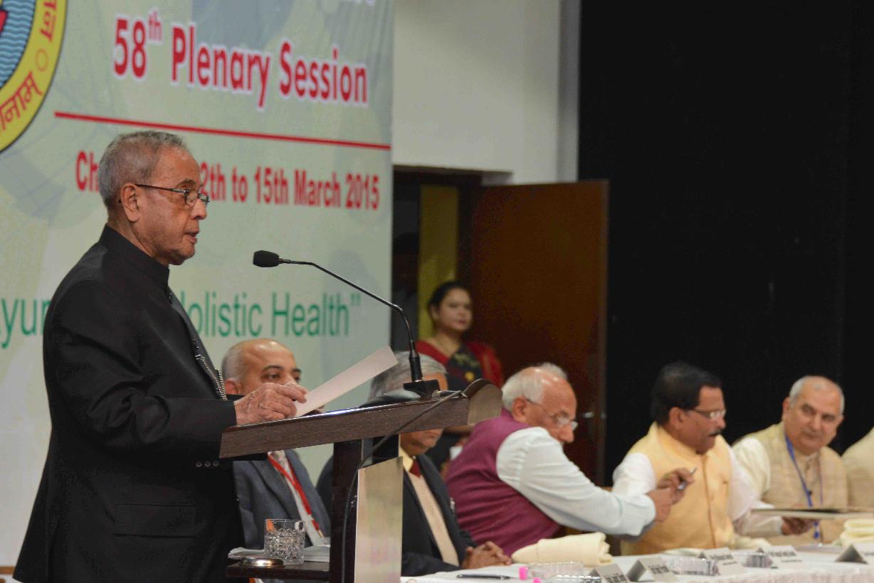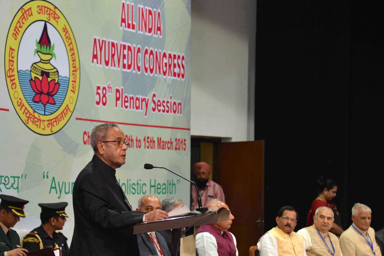 | Caption: | The President of India, Shri Pranab Mukherjee inaugurating the 58th Plenary Session of All India Ayurvedic Congress, at Chandigarh, in Punjab on March 14, 2015. |
