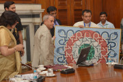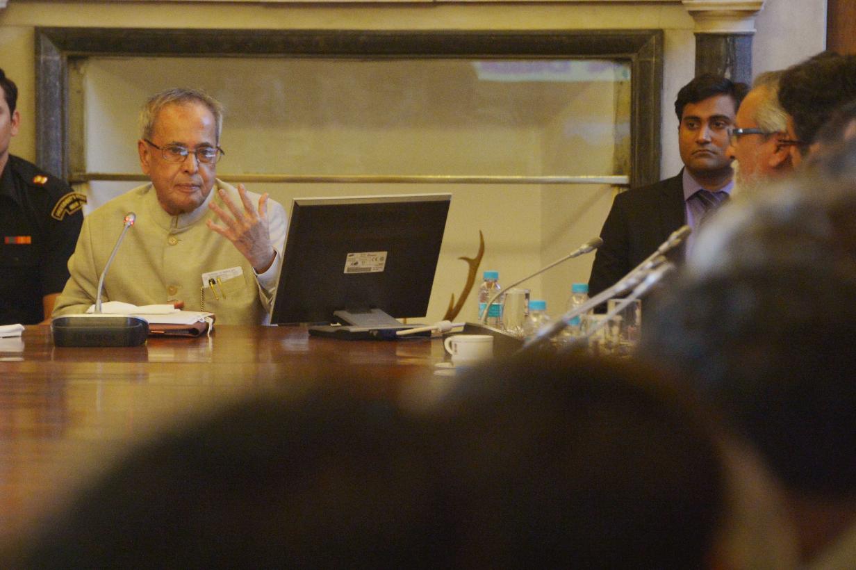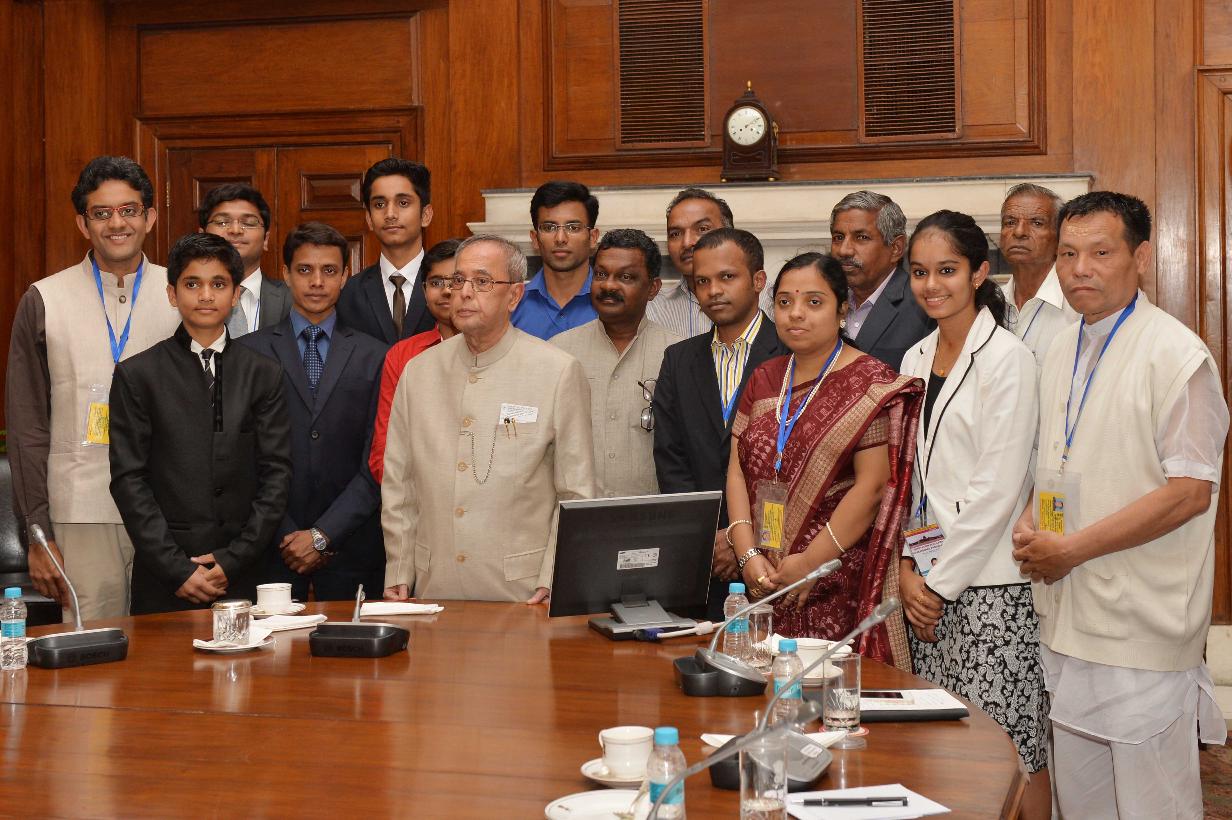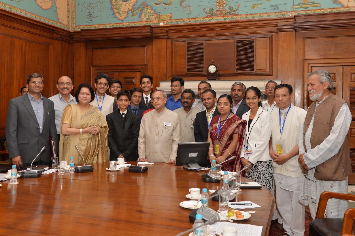 | Caption: | The President of India, Shri Pranab Mukherjee with the Second Batch of Innovation Scholars and participants of the writers and Artists In-Residence Programme, at Rashtrapati Bhavan, in New Delhi on March 19, 2015. |
