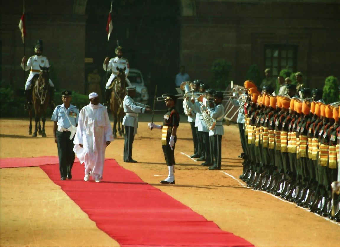 | Caption: | The President of India, Dr A P J Abdul Kalam at the Ceremonial Reception of the President of Senegal, His Excellency Mr Abdoulaye Wade at the Forecourt of Rashtrapati Bhavan in New Delhi on Oct 13, 2003 |