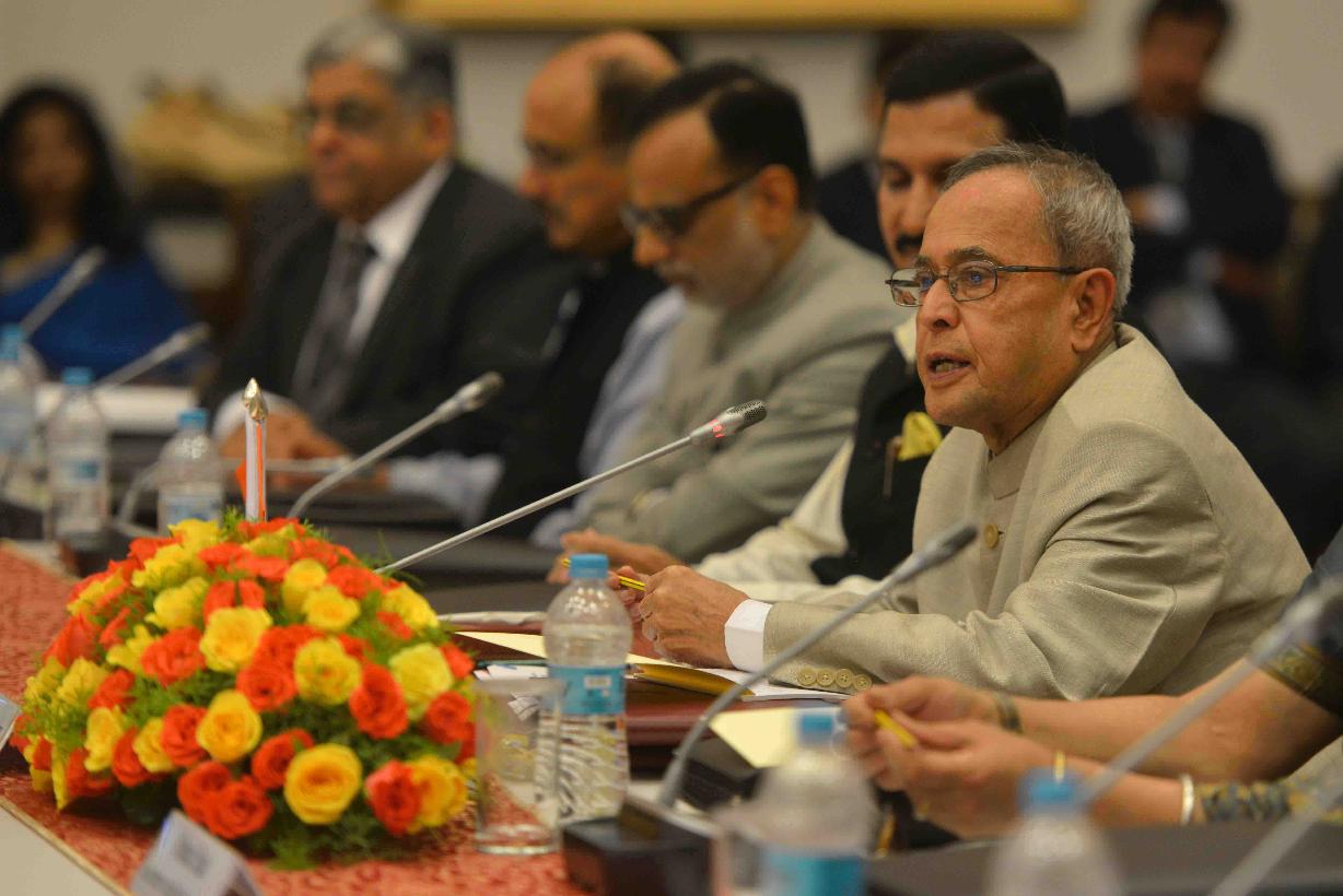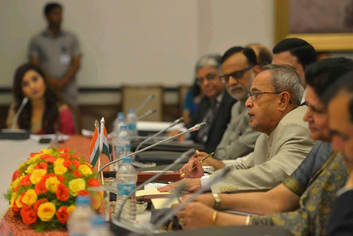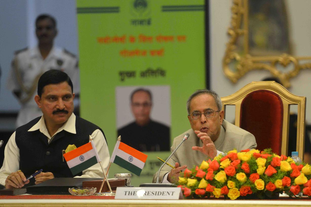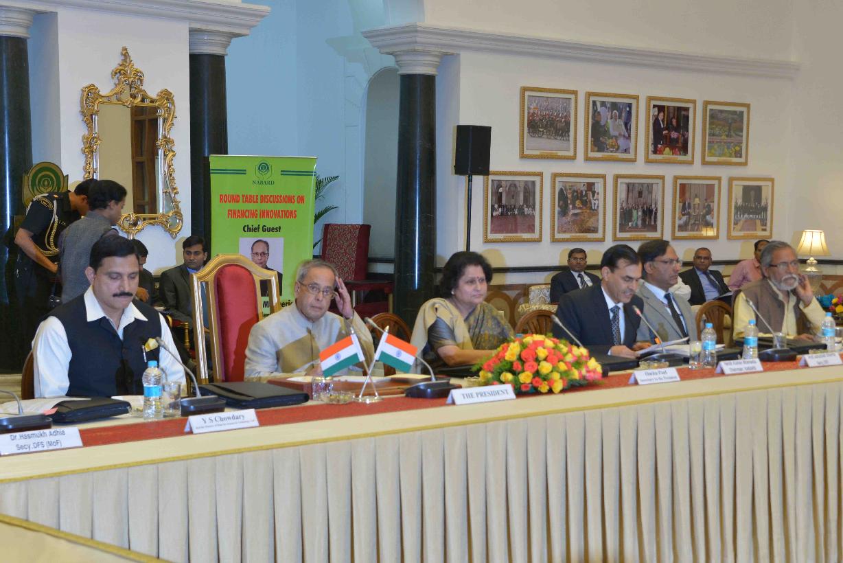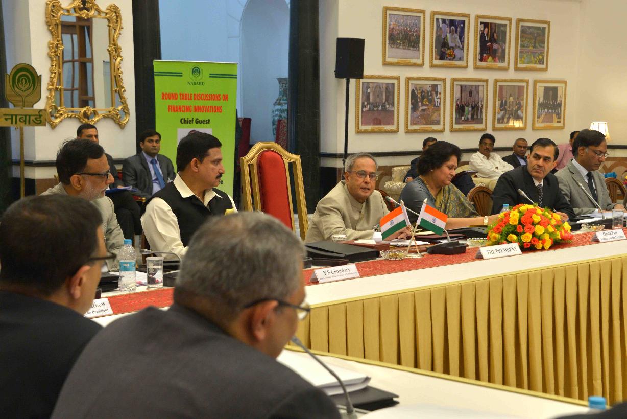 | Caption: | The President of India, Shri Pranab Mukherjee during the interaction with the leaders of banking and financial sector on the consultation and policy dialogue about financing innovation by NABARD, at RB Cultural Centre, in New Delhi on March 13, 2015. |