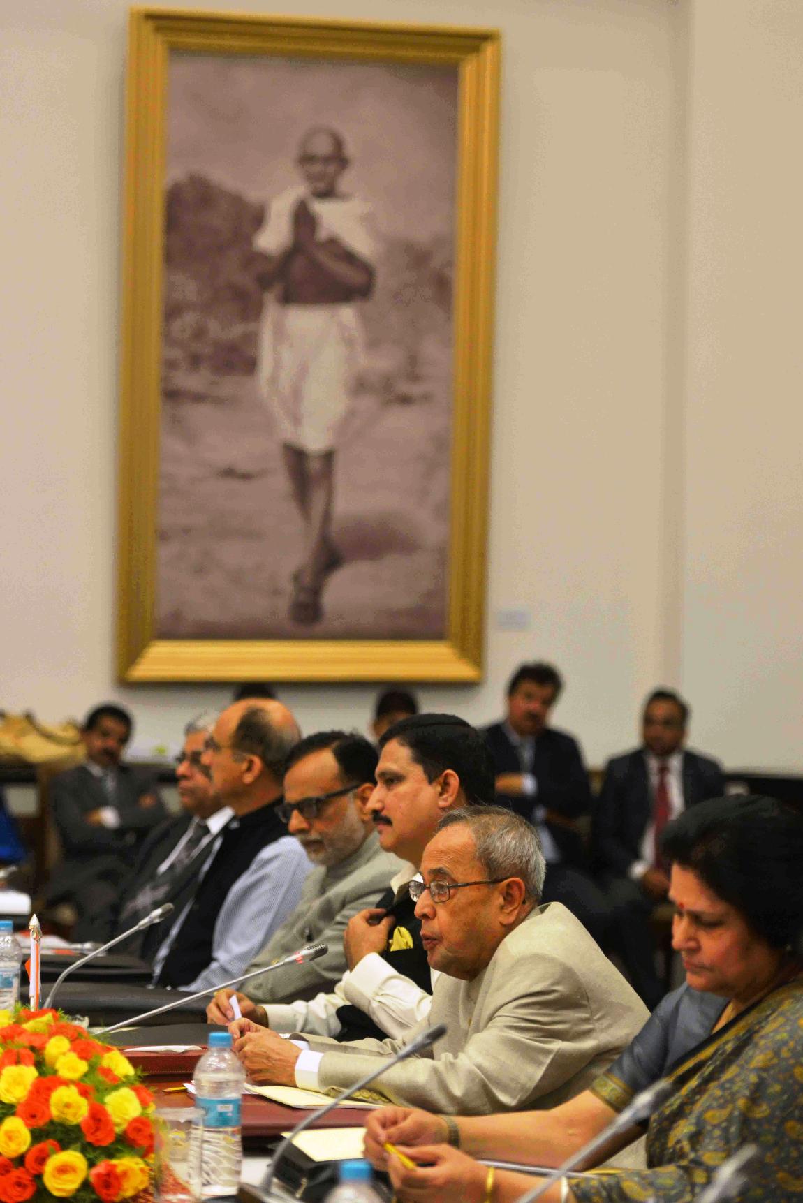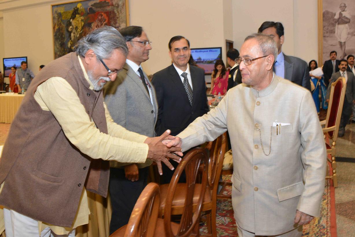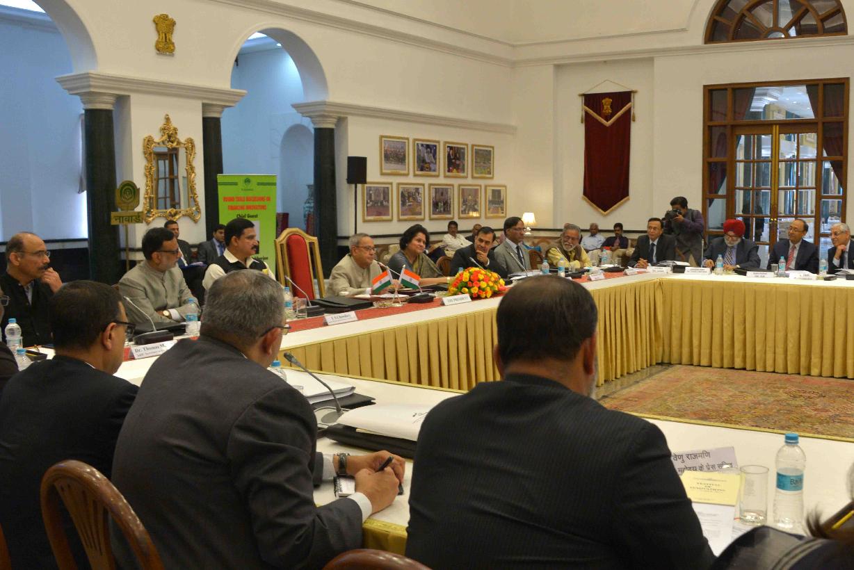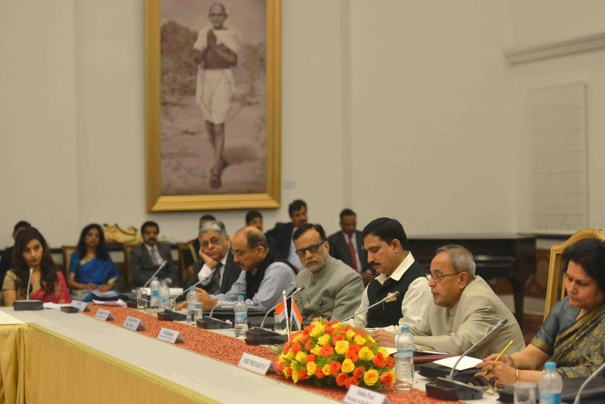 | Caption: | The President of India, Shri Pranab Mukherjee during the interaction with the leaders of banking and financial sector on the consultation and policy dialogue about financing innovation by NABARD, at RB Cultural Centre, in New Delhi on March 13, 2015. |