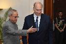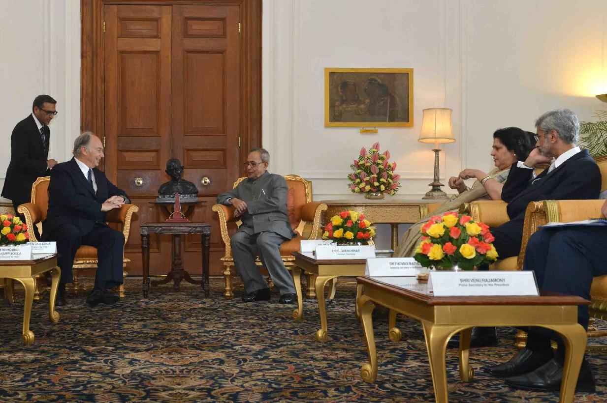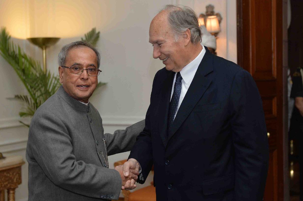 | Caption: | His Highness Prince Karim Aga Khan calling on the President of India, Shri Pranab Mukherjee, at Rashtrapati Bhavan, in New Delhi on April 07, 2015. |