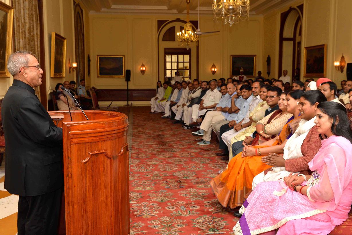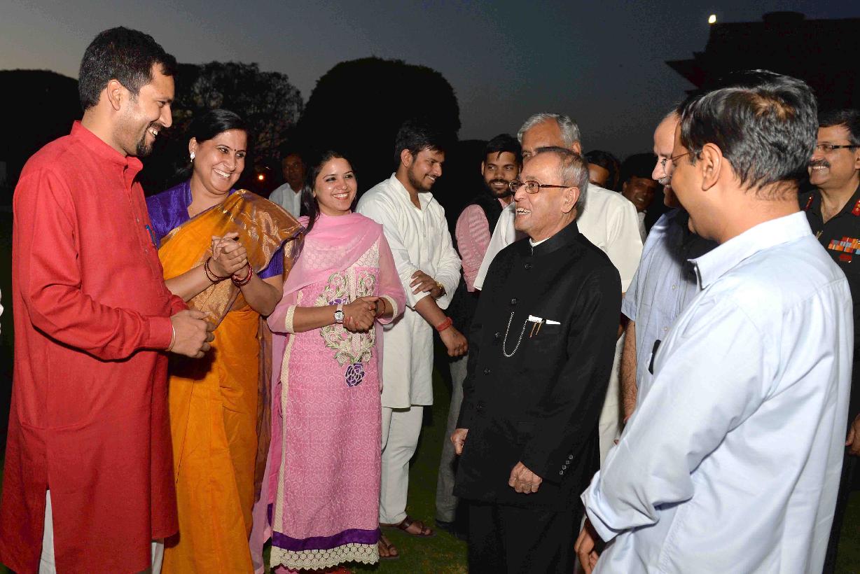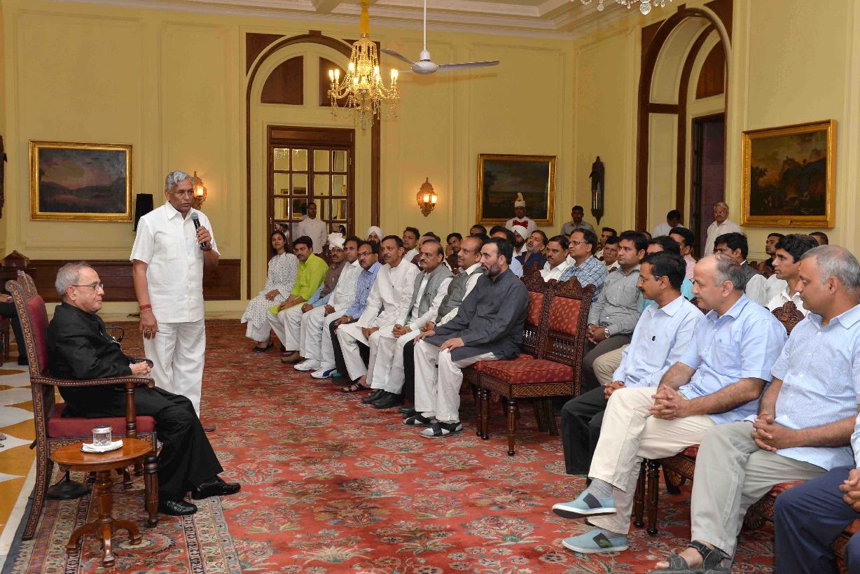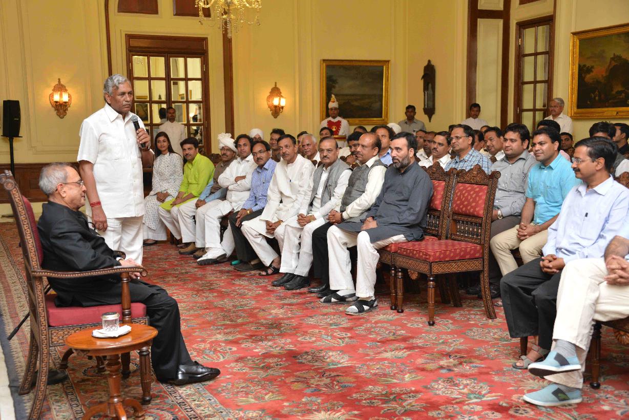 | Caption: | The President of India, Shri Pranab Mukherjee with the Chief Minister of Delhi, Shri Arvind Kejriwal, the Speaker, Delhi Legislative Assembly, Shri Ram Niwas Goel and the MLAs of 6th Legislative Assembly of Delhi, at Rashtrapati Bhavan, in New Delhi on March 27, 2015. |
