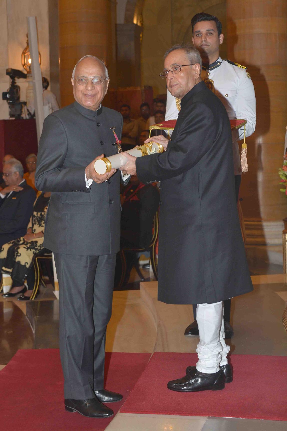 | Caption: | The President of India, Shri Pranab Mukherjee presenting Padma Bhushan awards, at an Investiture Ceremony, at Rashtrapati Bhavan, in New Delhi on April 08, 2015. |