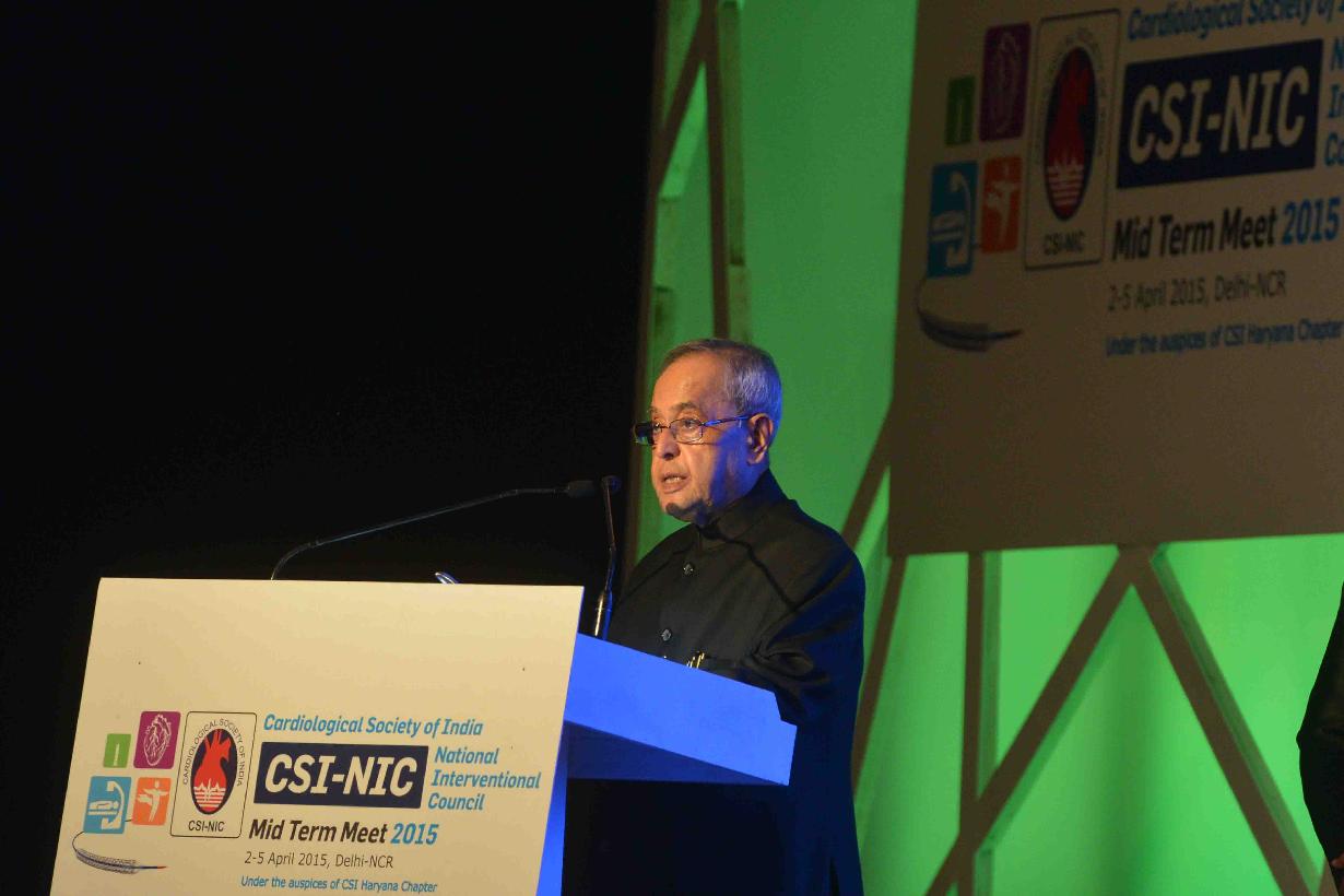 | Caption: | The President of India, Shri Pranab Mukherjee gracing the inaugural ceremony of the National Intervention Council (NIC - 2015) meeting of the Cardiological Society of India, in New Delhi on April 04, 2015. |