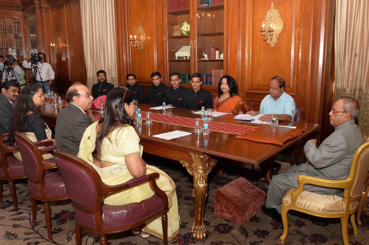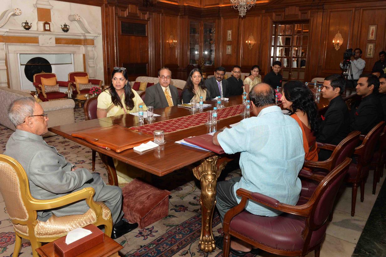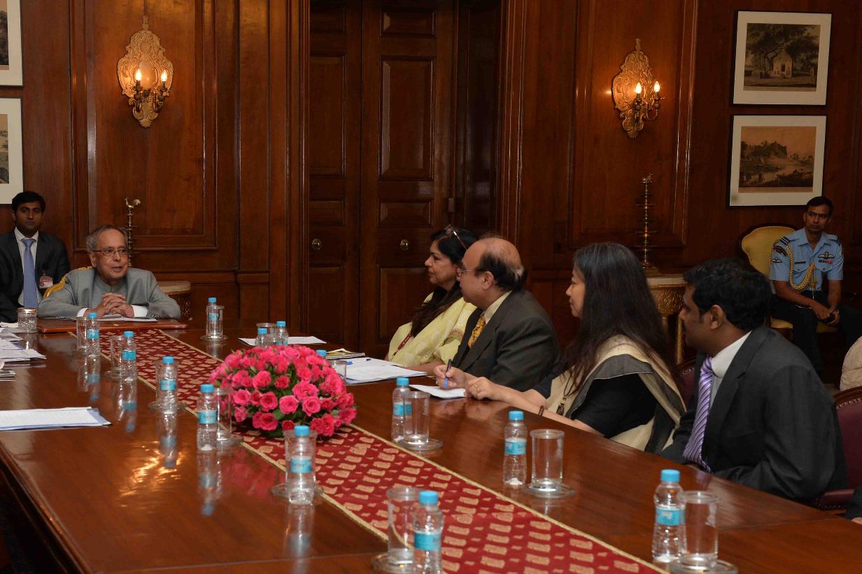 | Caption: | The President of India, Shri Pranab Mukherjee meeting with the Officer Trainees of Indian Information Service (IIS) of 2014 batch from Indian Institute of Mass Communication, at Rashtrapati Bhavan, in New Delhi on May 14, 2015. |