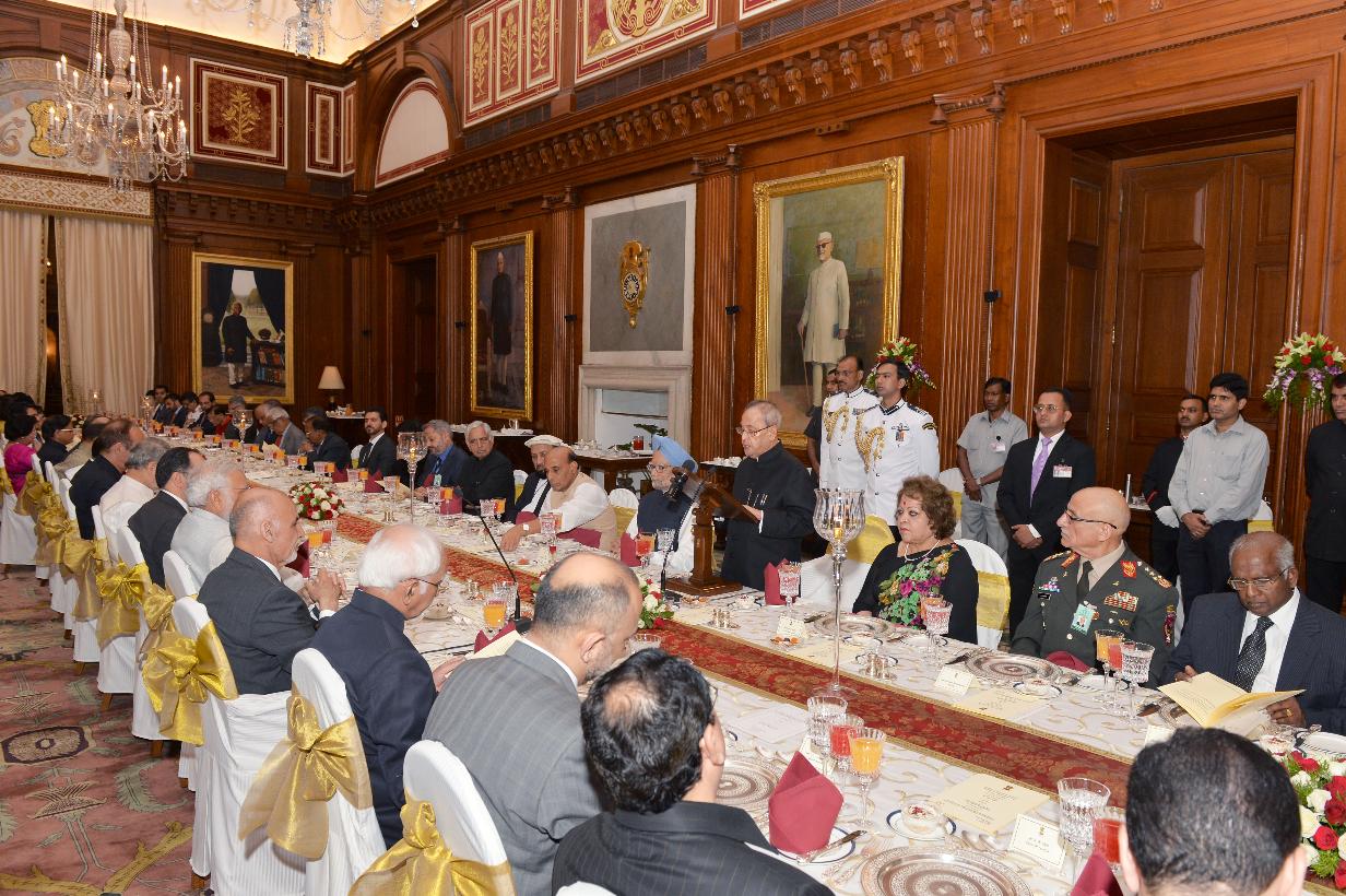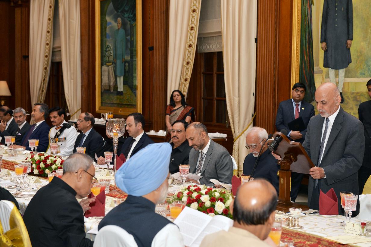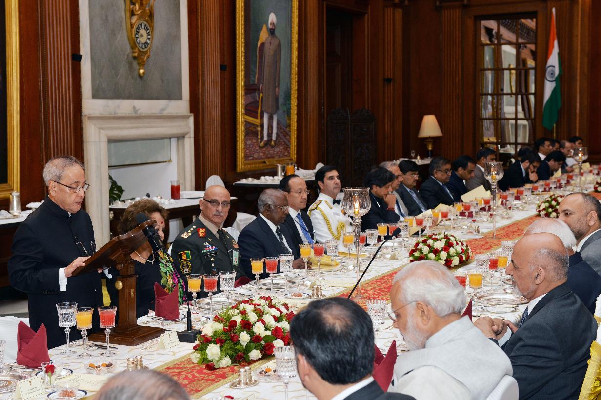 | Caption: | The President of India, Shri Pranab Mukherjee at the Banquet hosted in honour of the President of the Islamic Republic of Afghanistan, Mr. Mohammad Ashraf Ghani, at Rashtrapati Bhavan, in New Delhi on April 28, 2015. |