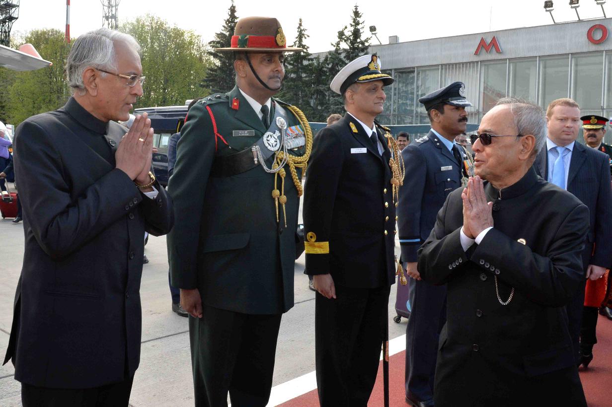 | Caption: | The President of India, Shri Pranab Mukherjee being seen off on his departure from Vnukovo 2 Airport, at Moscow, in Russia on May 11, 2015. |