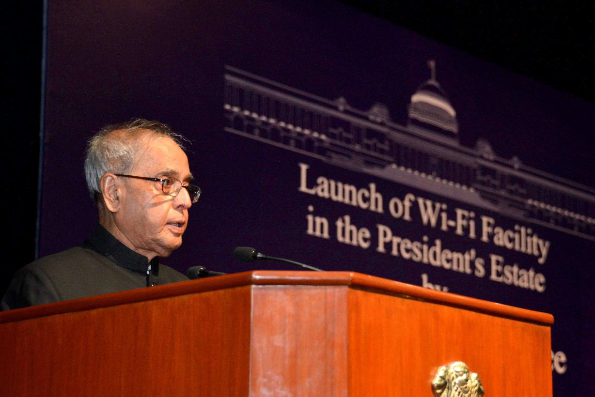 | Caption: | The President of India, Shri Pranab Mukherjee launching the Wi-Fi facility in the President's Estate, at Rashtrapati Bhavan Cultural Centre, in New Delhi on May 22, 2015. |