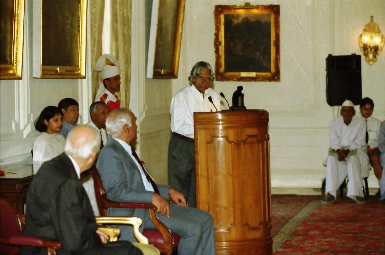 | Caption: | The President of India, Dr A P J Abdul Kalam at the International Day of Older Persons at the Yellow Drawing Room of Rashtrapati Bhavan in New Delhi on Oct 01, 2003 |