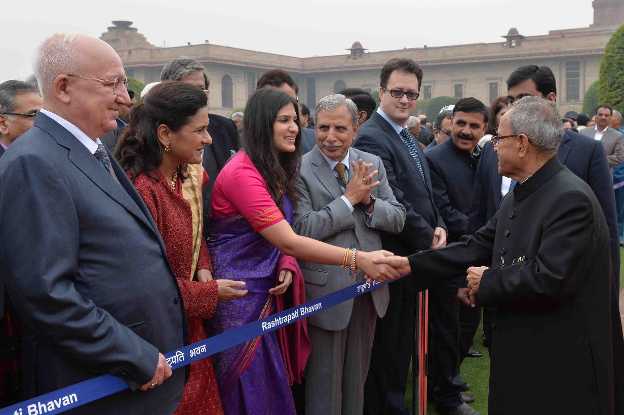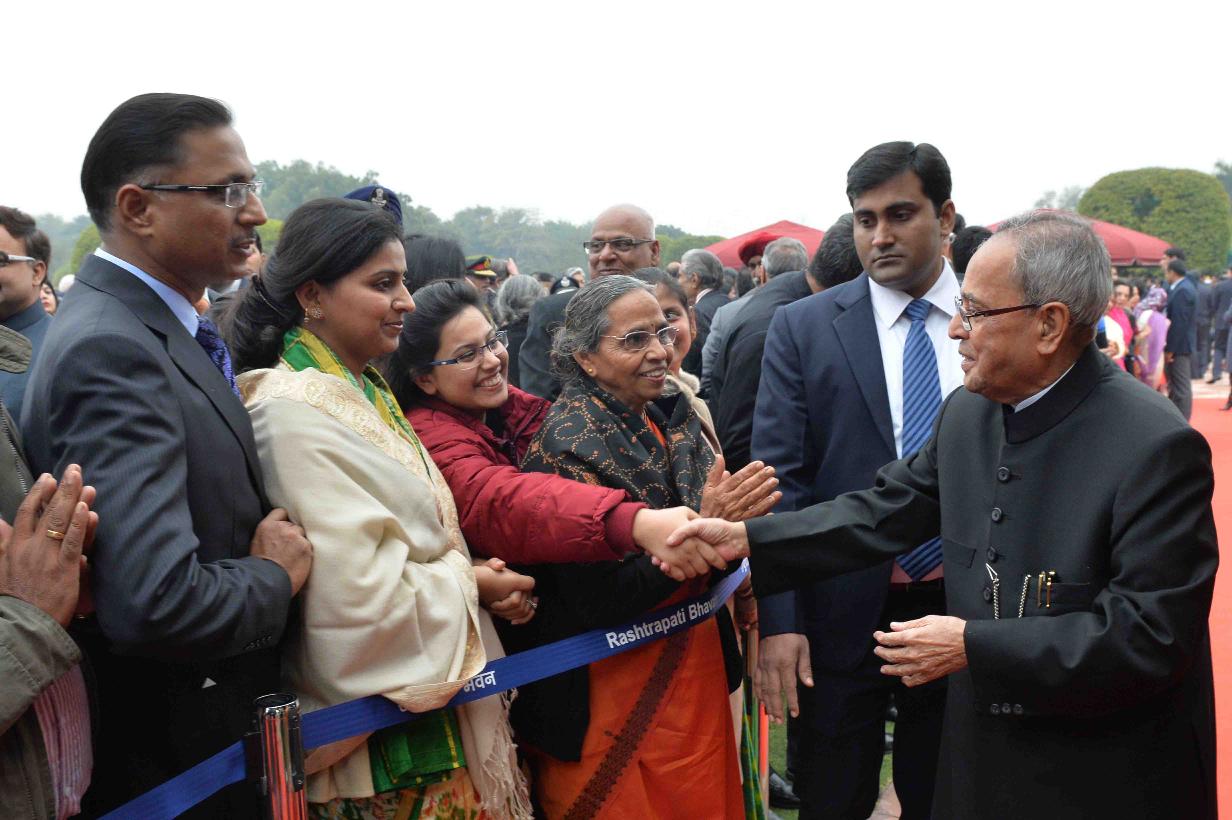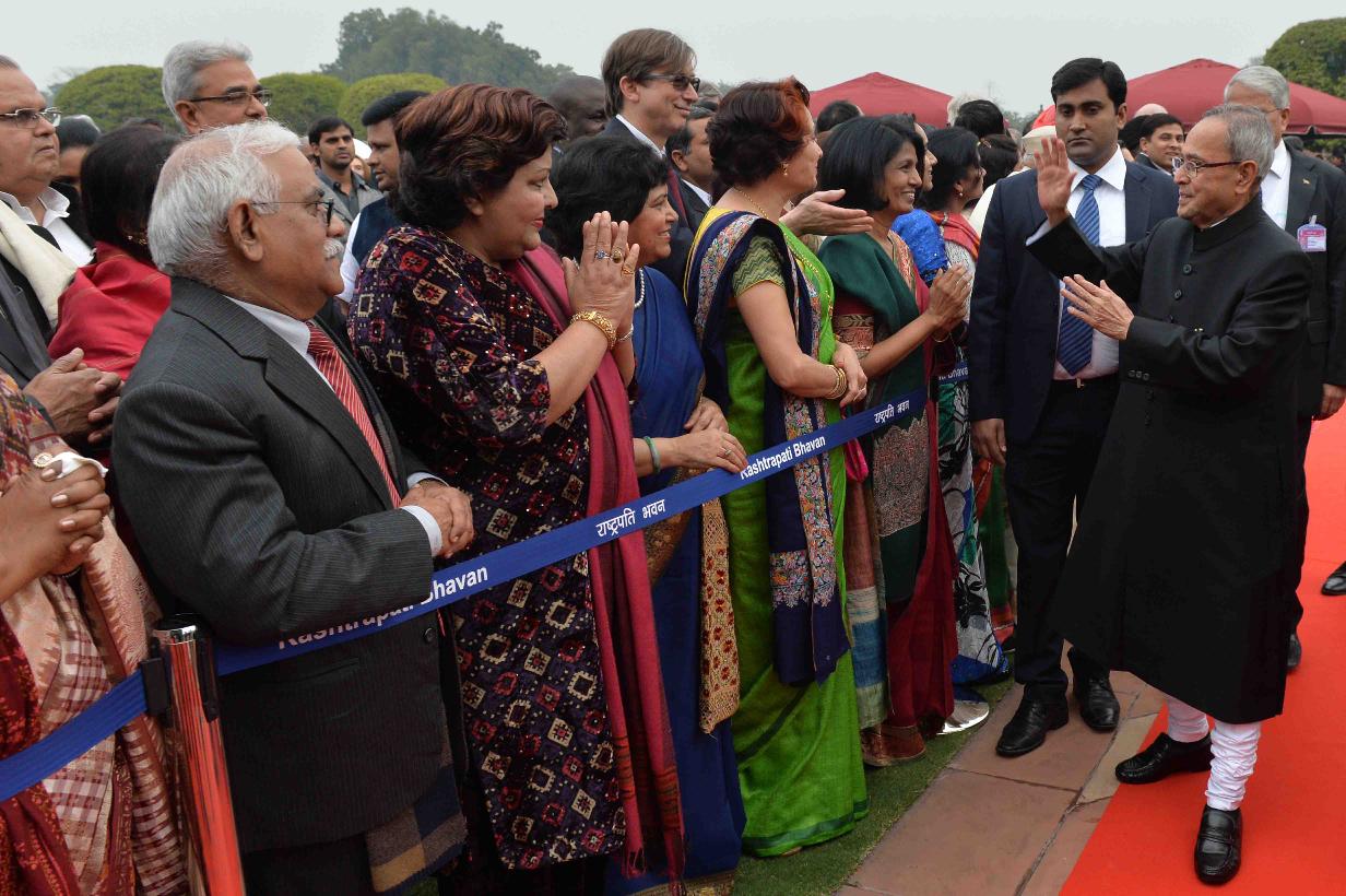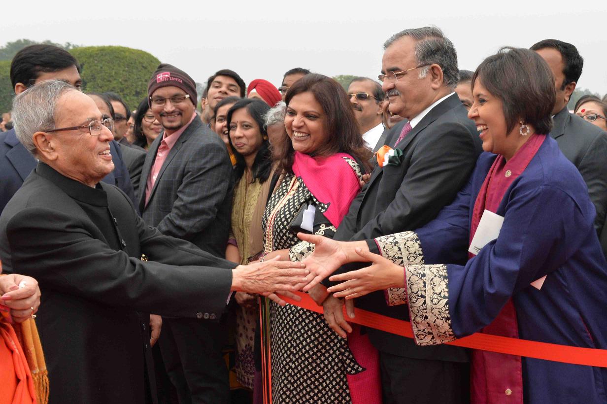 | Caption: | The President of India Shri Pranab Mukherjee, the Prime Minister of India, Shri Narendra Modi with the Chief Guest of Republic Day, the President of the United States of America, HE Mr Barack Obama and Mrs Michelle Obama during At Home reception on the occasion of the 66th Republic Day Celebrations, at Rashtrapati Bhavan, in New Delhi on January 26, 2015 |