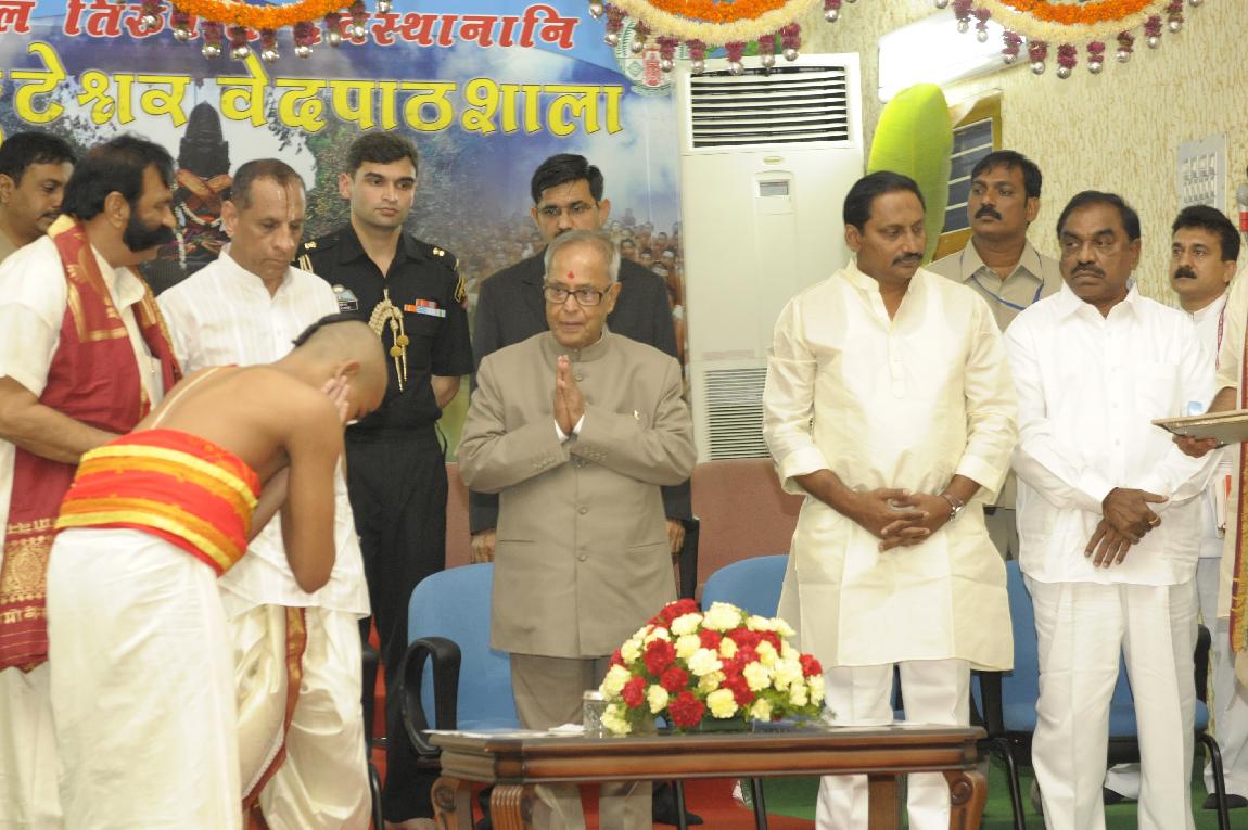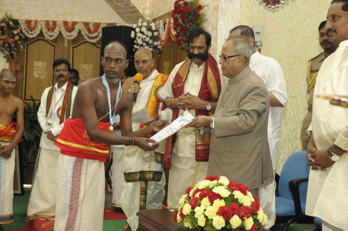 | Caption: | The President of India, Shri Pranab Mukherjee Visiting SV Veda Patasala Dharmagiri at Tirupati on Sep 9, 2012 |