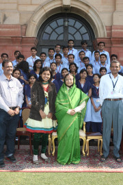 | Caption: | The President of India, Smt Pratibha Devisingh Patil posing for a Group Photograph with Students from Vidya Bharati Mahavidyalaya, Amravati at Rashtrapati Bhavan in New Delhi on Feb 09, 2012 |