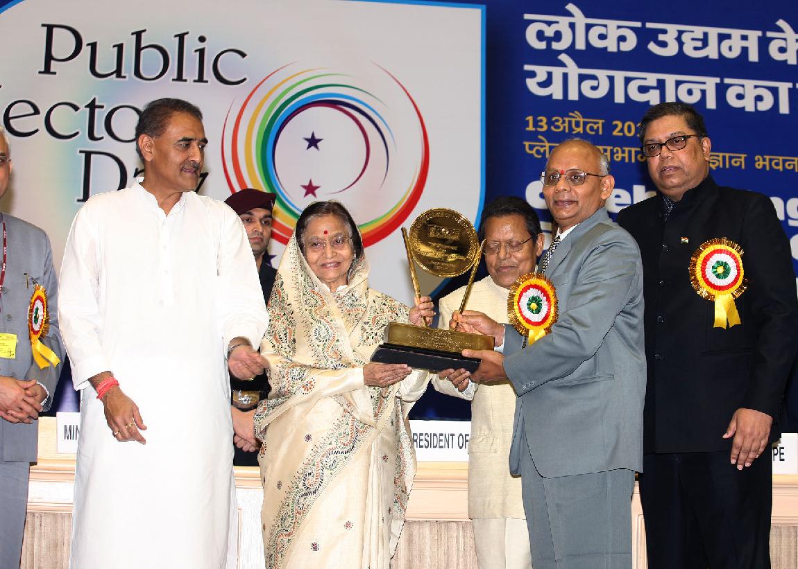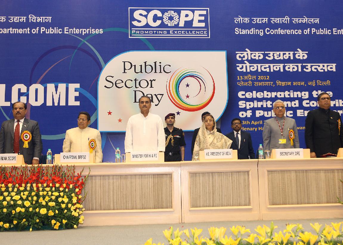 | Caption: | The President of India, Smt Pratibha Devisingh Patil during the Presentation Ceremony of the SCOPE Meritorious Awards on the occasion of the Annual Public Sector Day Celebration at Vigyan Bhawan in New Delhi on April 13, 2012 |