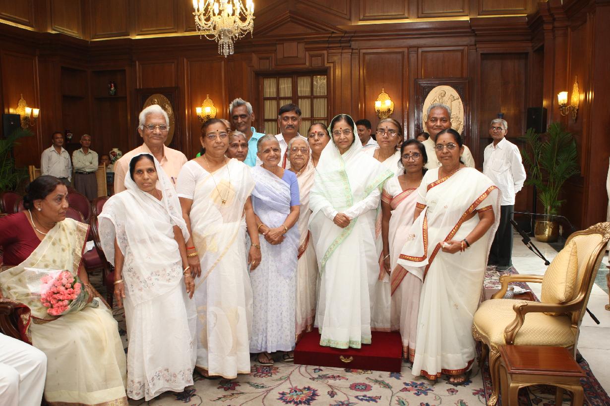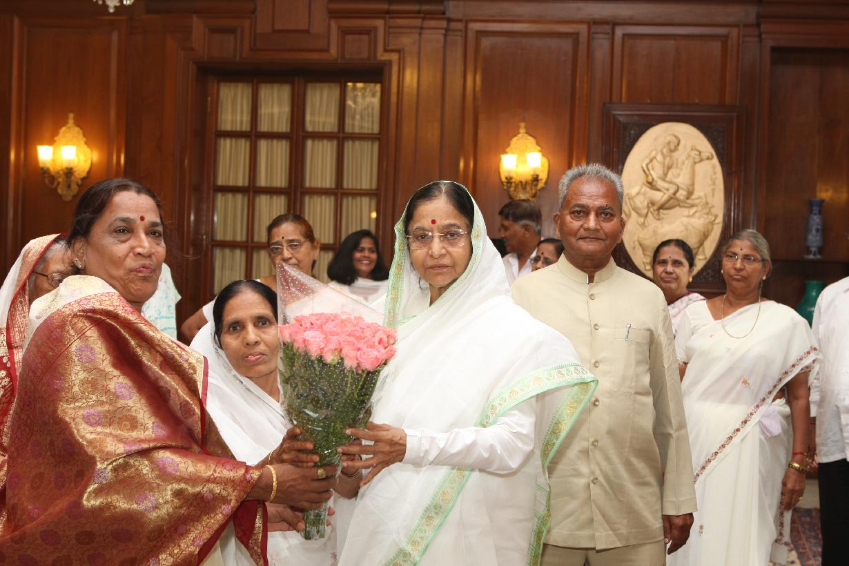 | Caption: | The President of India, Smt Pratibha Devisingh Patil interacting with Smt Ranjan Natwarlal Shah and others from Jalgaon at Rashtrapati Bhavan in New Delhi on Oct 06, 2008 |