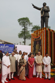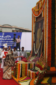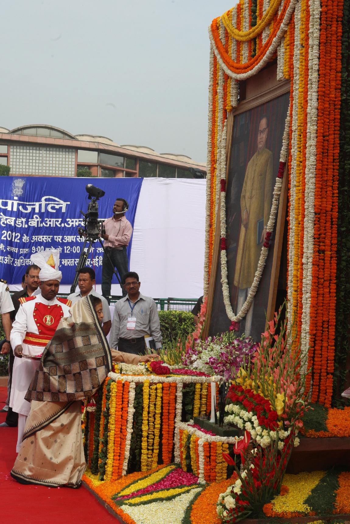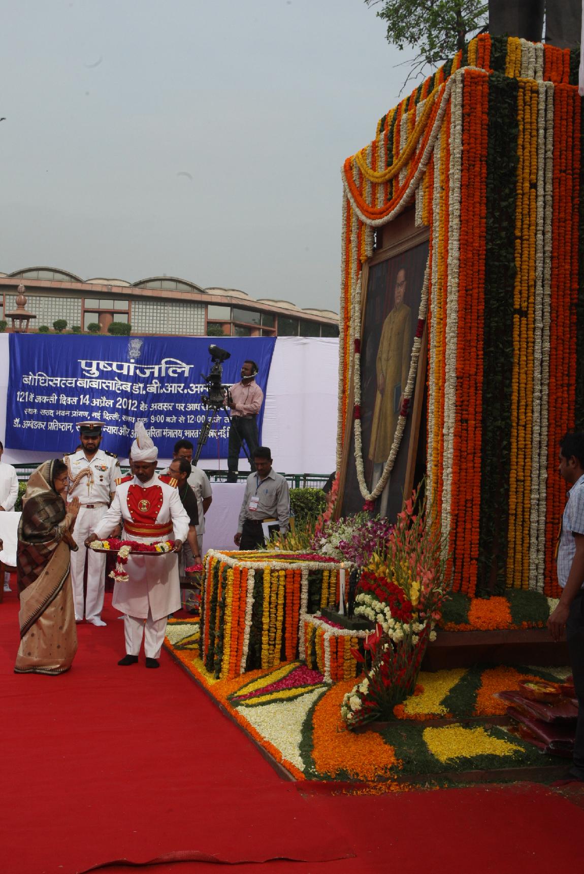 | Caption: | The President of India, Smt Pratibha Devisingh Patil paying floral tributes at the statue of Baba Saheb Dr B R Ambedkar on his 121st Birth Anniversary at Parliament House Lawns in New Delhi on April 14, 2012 |