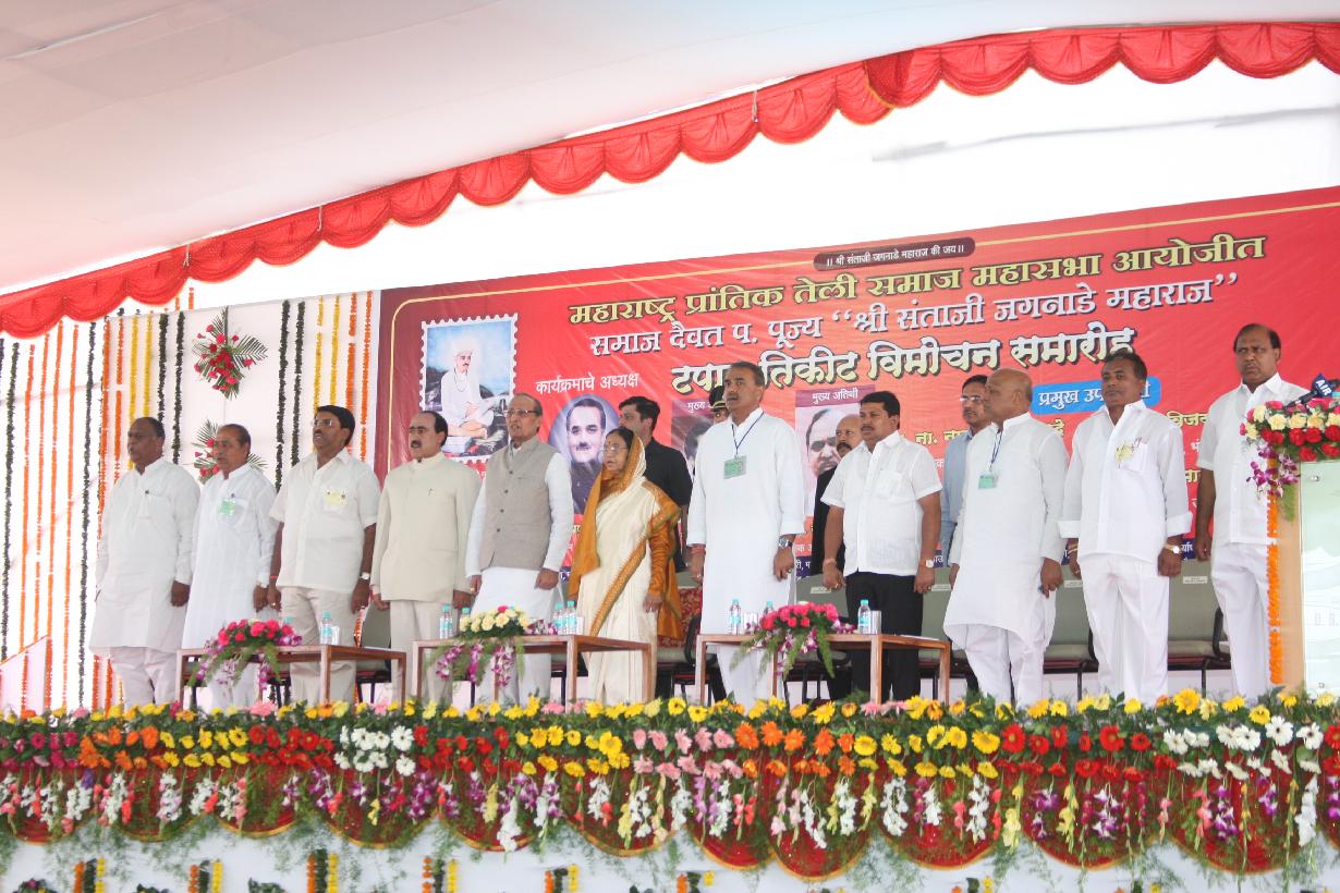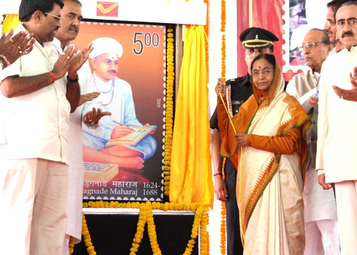 | Caption: | The President of India, Smt Pratibha Devisingh Patil releasing a Postal Stamp on Sant Jagnade Maharaj at Gondia in Maharashtra on Feb 09, 2009 |