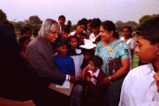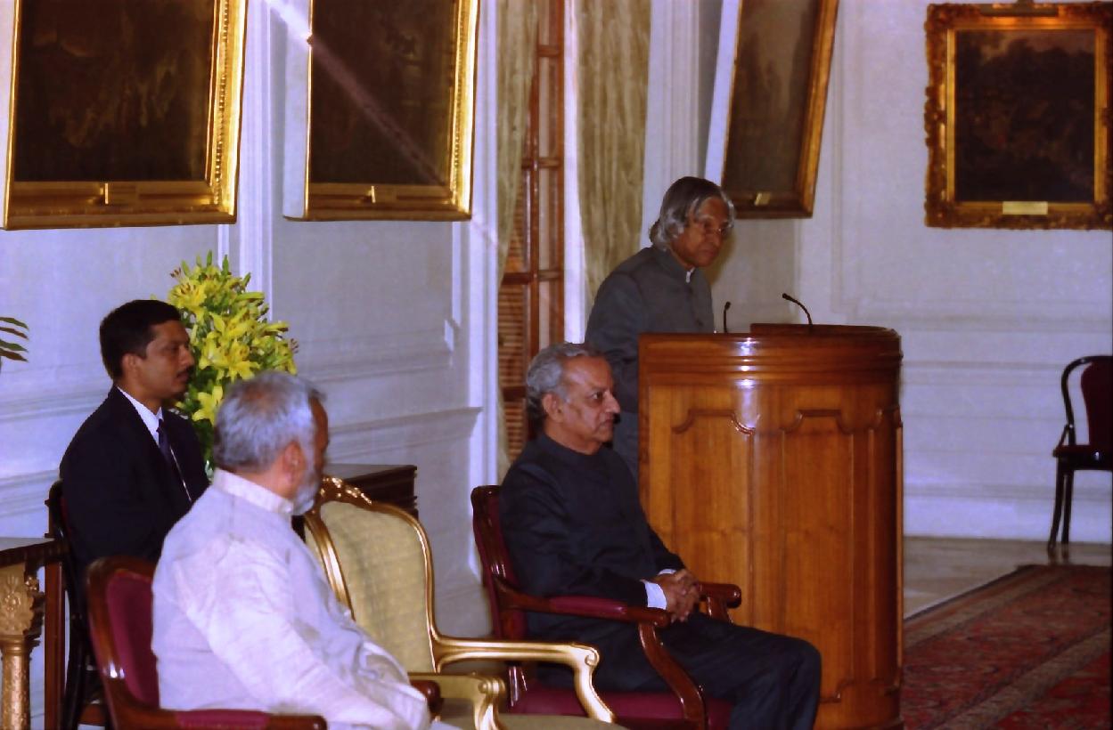 | Caption: | The President of India, Dr A P J Abdul Kalam at the Launch the National Campaign on Issuing Birth Certificates at the Yellow Drawing Room of Rashtrapati Bhavan in New Delhi on Nov 14, 2003 |