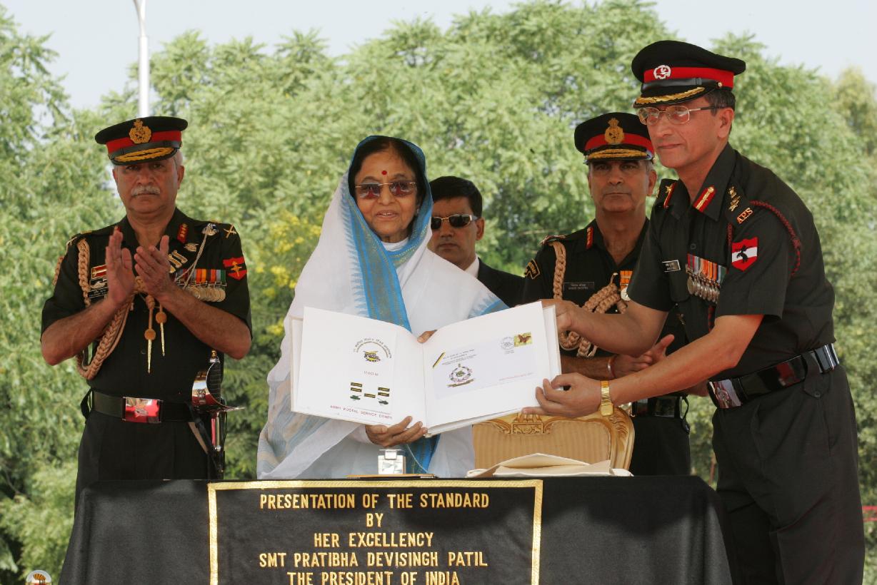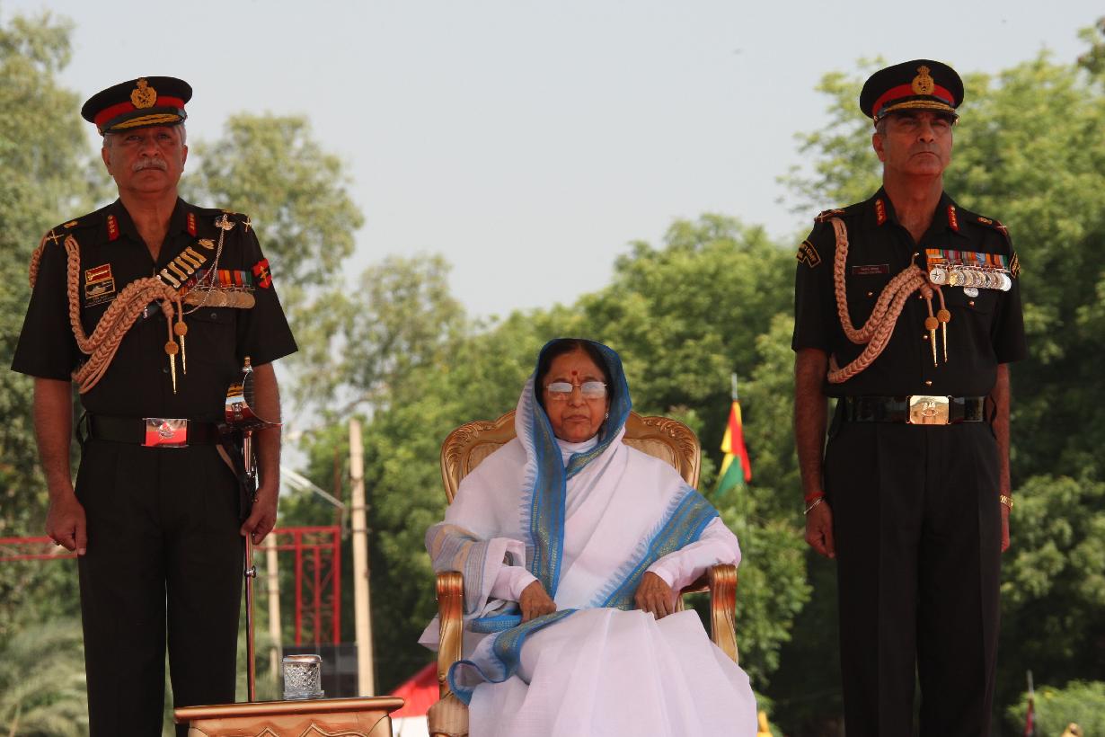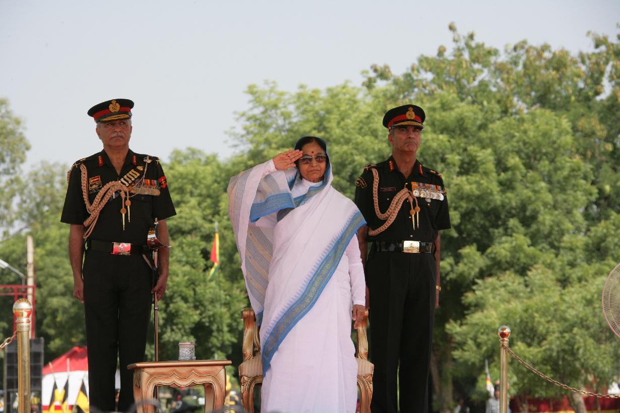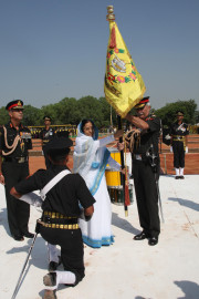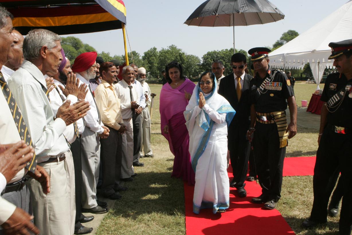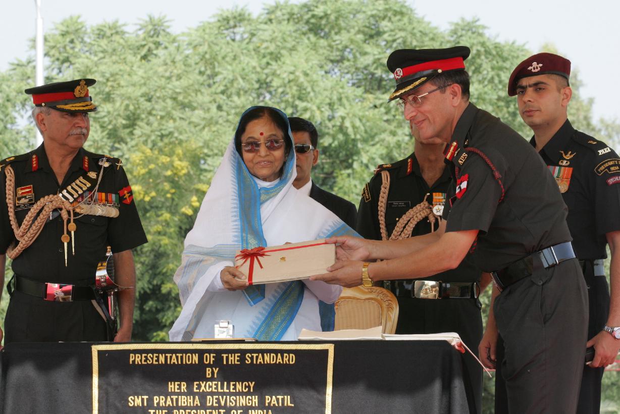 | Caption: | The President of India, Smt Pratibha Devisingh Patil during the Presentation of the Standard to 46 Armoured Regiment at Hisar in Haryana on Oct 17, 2008 |