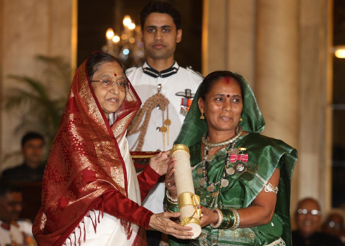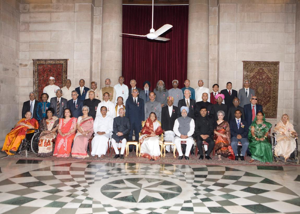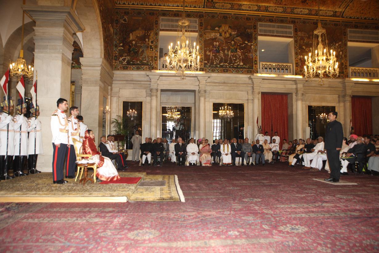 | Caption: | The President of India, Smt Pratibha Devisingh Patil presenting the Padma Vibhushan posthumously at Darbar Hall of Rashtrapati Bhavan in New Delhi on April 04, 2012 |