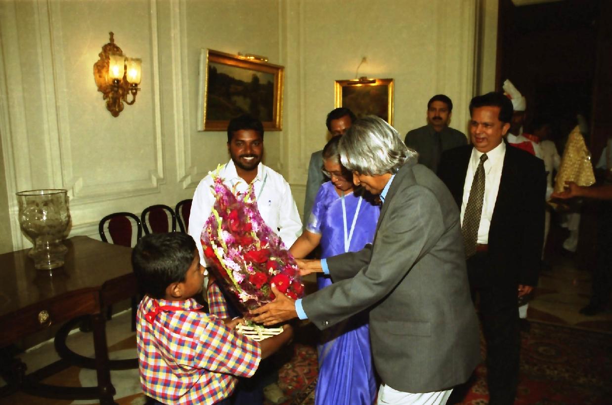 | Caption: | The Student from Schwartz Matriculation School, Ramanathapuram calling on the President of India, Dr A P J Abdul Kalam at the Yellow Drawing Room of Rashtrapati Bhavan in New Delhi on Nov 07, 2003 |