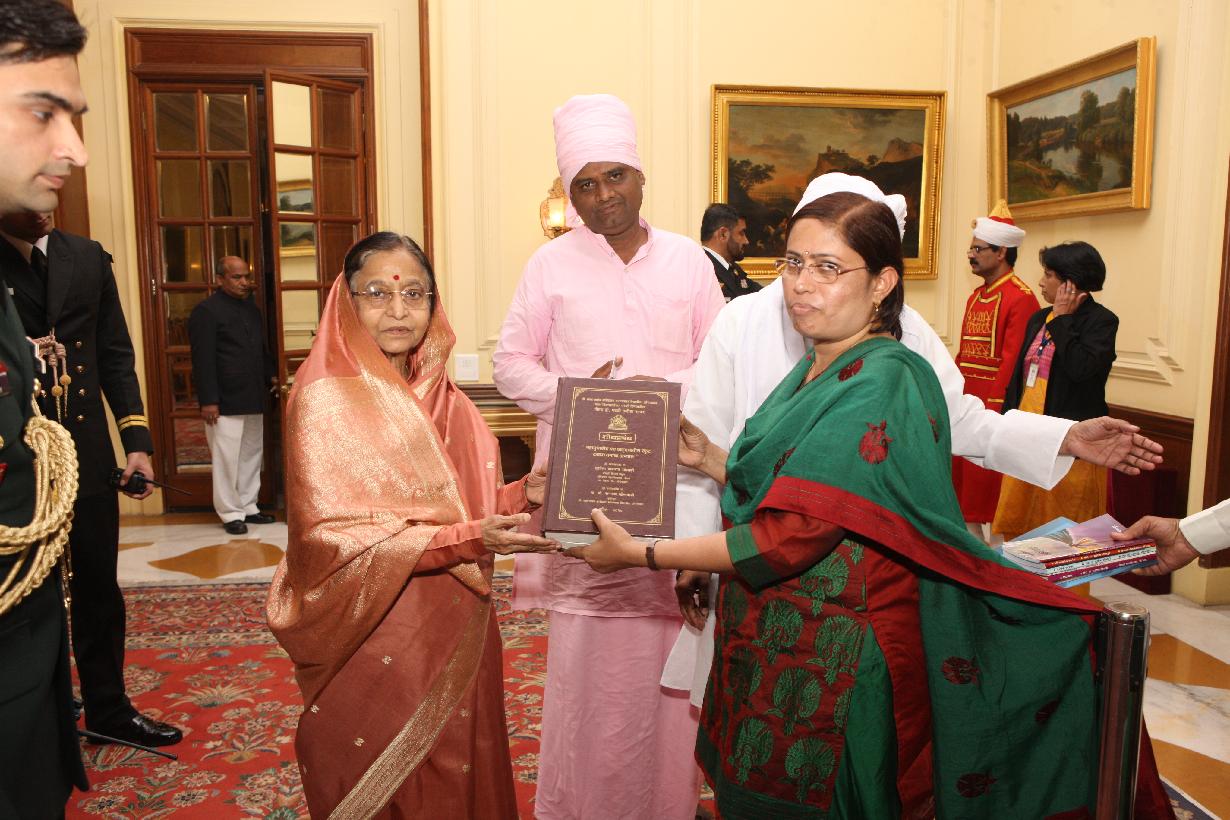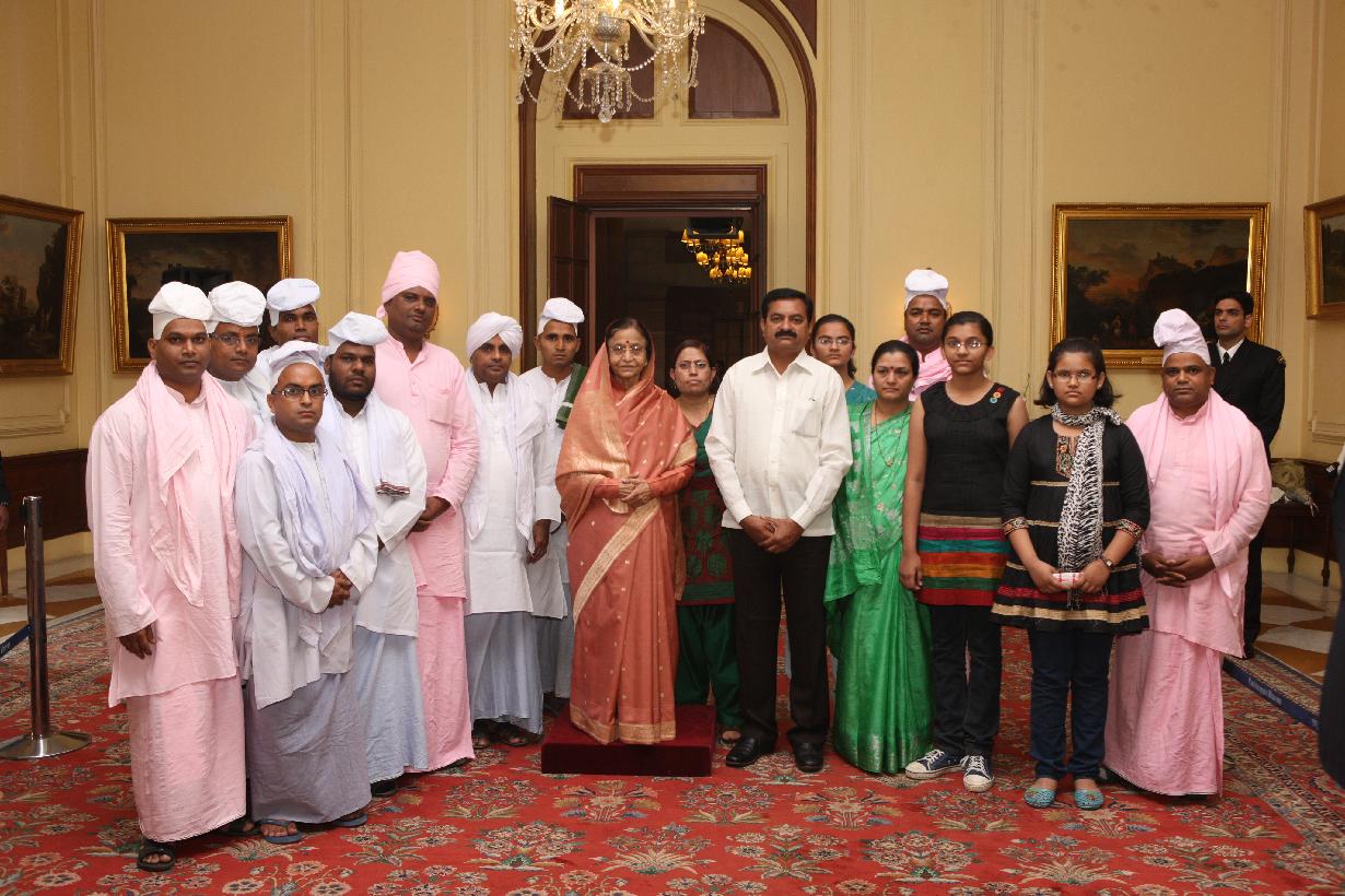 | Caption: | The President of India, Smt Pratibha Devisingh Patil interacting with Shri Mohanraj Amrate and others at Rashtrapati Bhavan in New Delhi on Feb 22, 2012 |