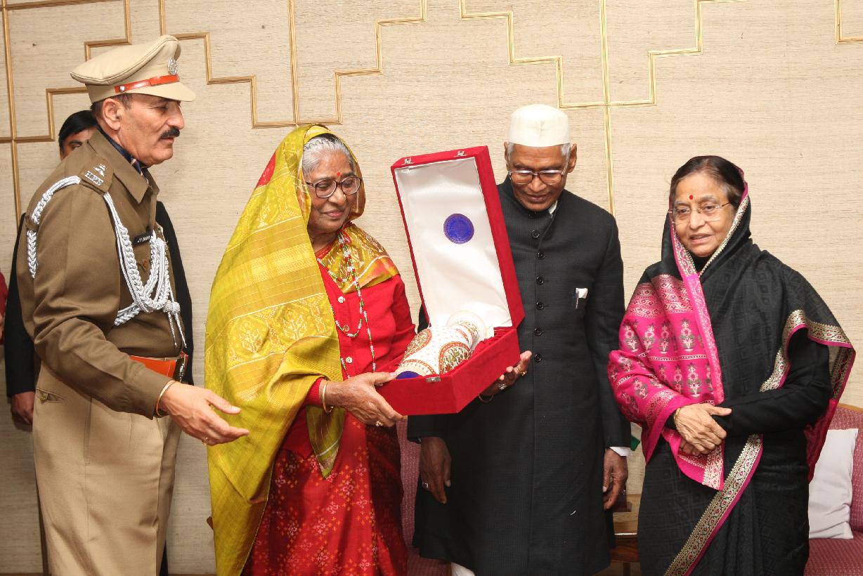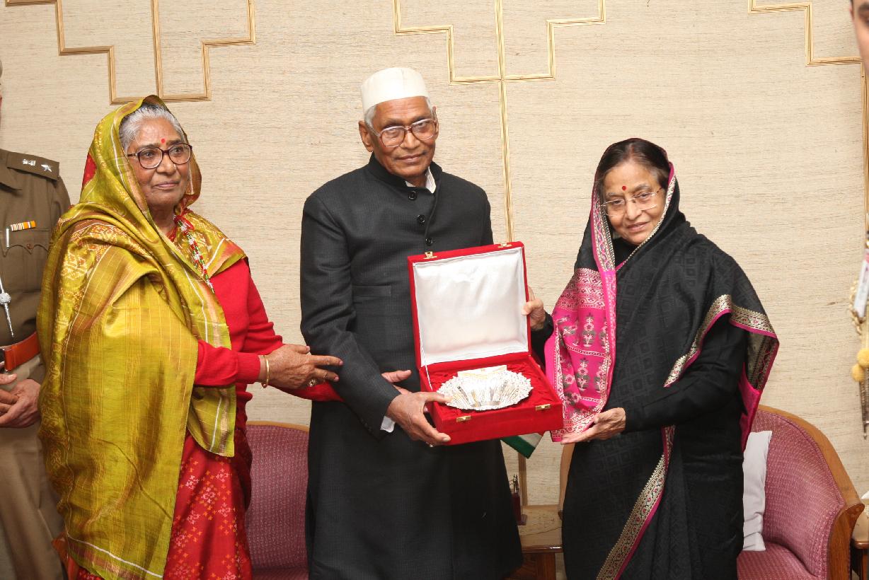| Caption: | The President of India, Smt Pratibha Devisingh Patil exchanging Gift with the Governor of Haryana, Shri Jagannath Pahadia at Raj Bhavan in Haryana on Feb 07, 2012 |