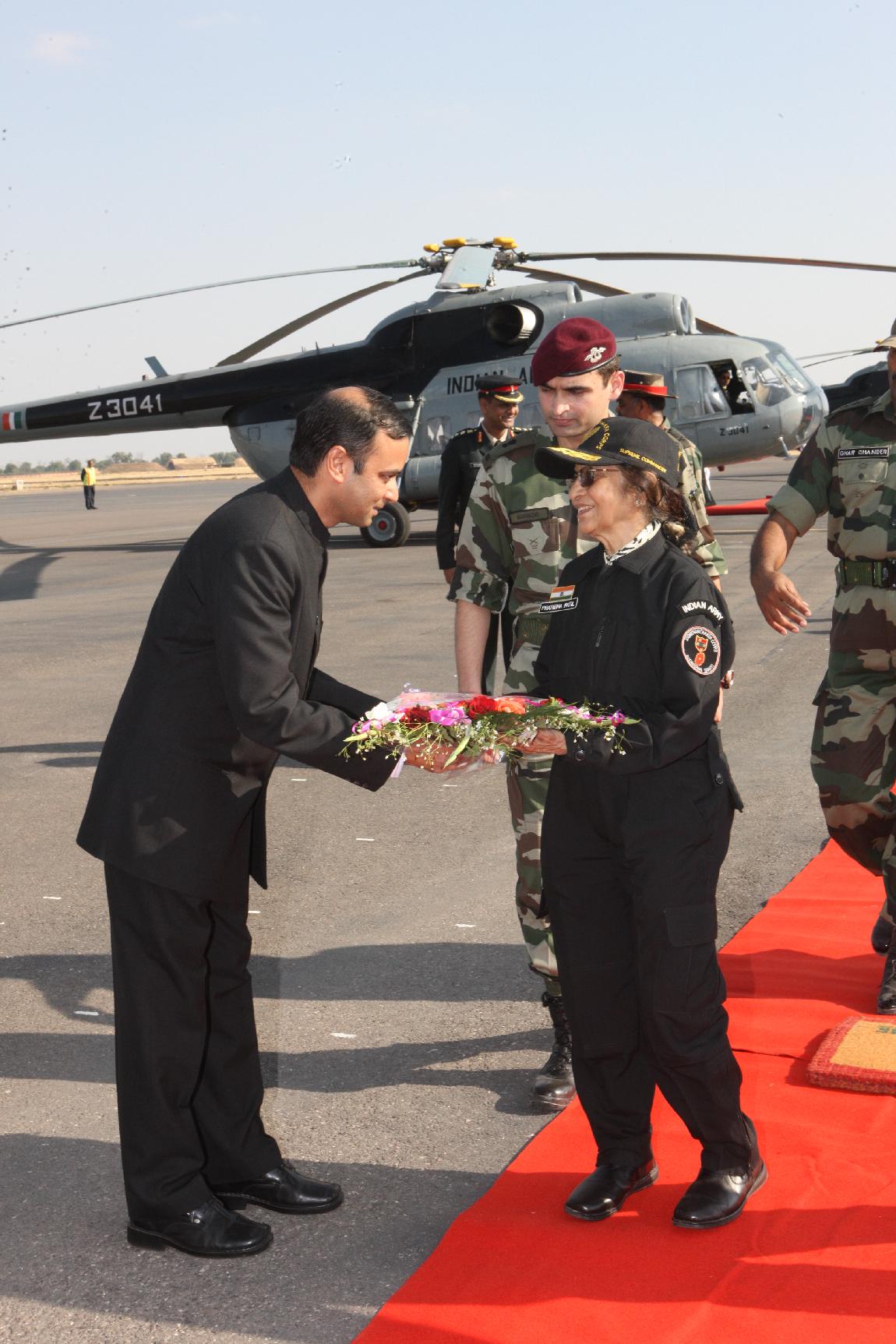 | Caption: | The President of India, Smt Pratibha Devisingh Patil before departure from Jodhpur Airport in Rajasthan on Dec 05, 2011 |