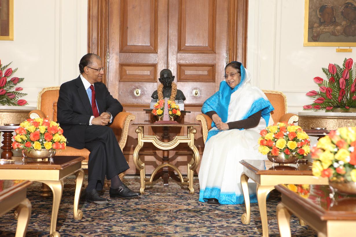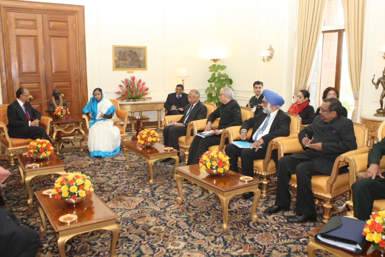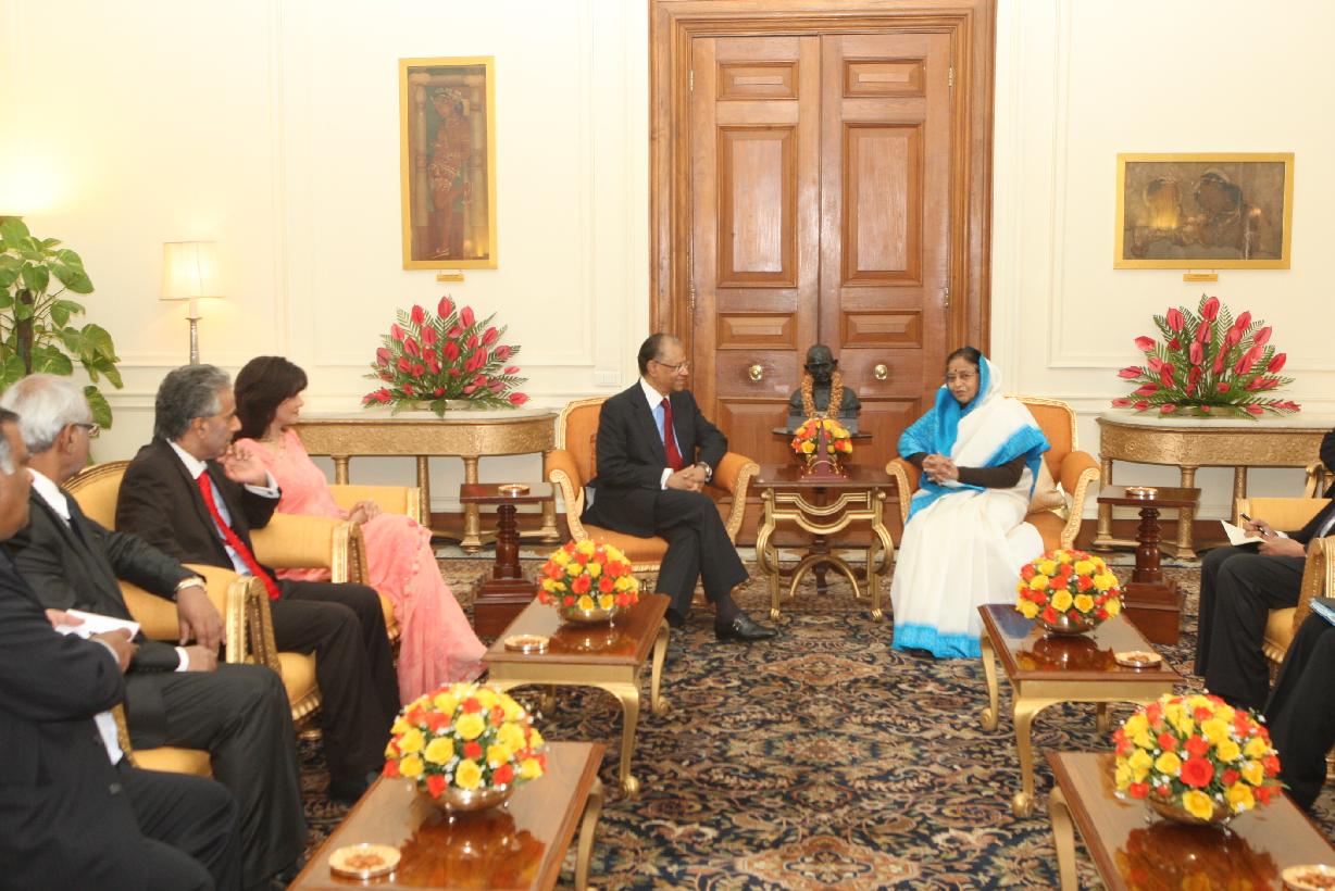| Caption: | The Prime Minister of Mauritius, HE Dr Navinchandra Ramgoolam and his wife Mrs Veena Ramgoolam Calling on the President of India, Smt Pratibha Devisingh Patil at Rashtrapati Bhavan in New Delhi on Feb 07, 2012 |