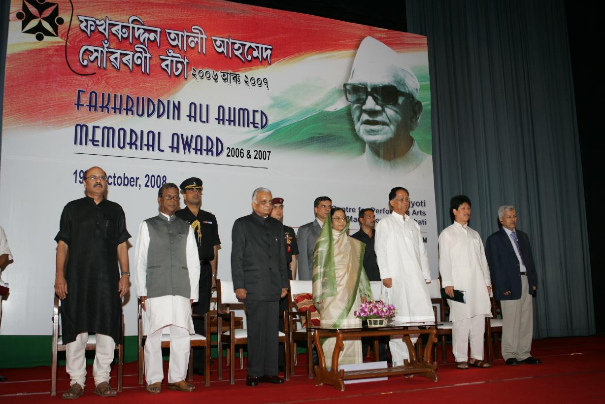 | Caption: | The President of India, Smt Pratibha Devisingh Patil presenting the Fakhruddin Ali Ahmed Award-2006 at Guwahati in Assam on Oct 19, 2008 |