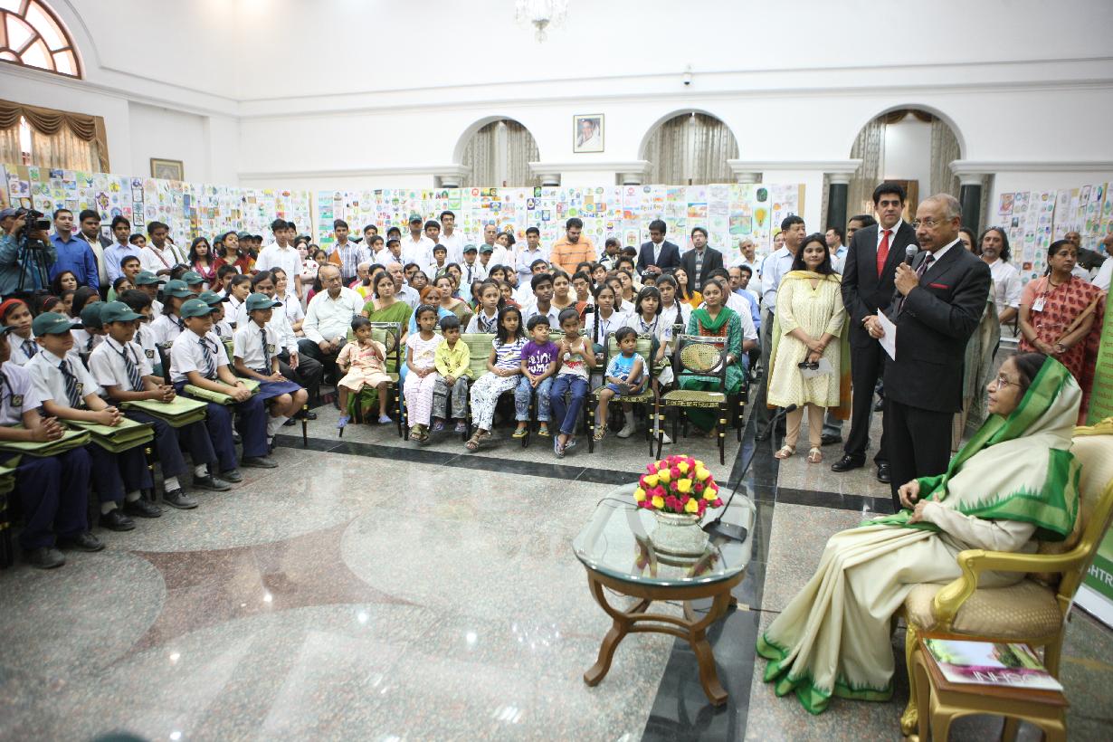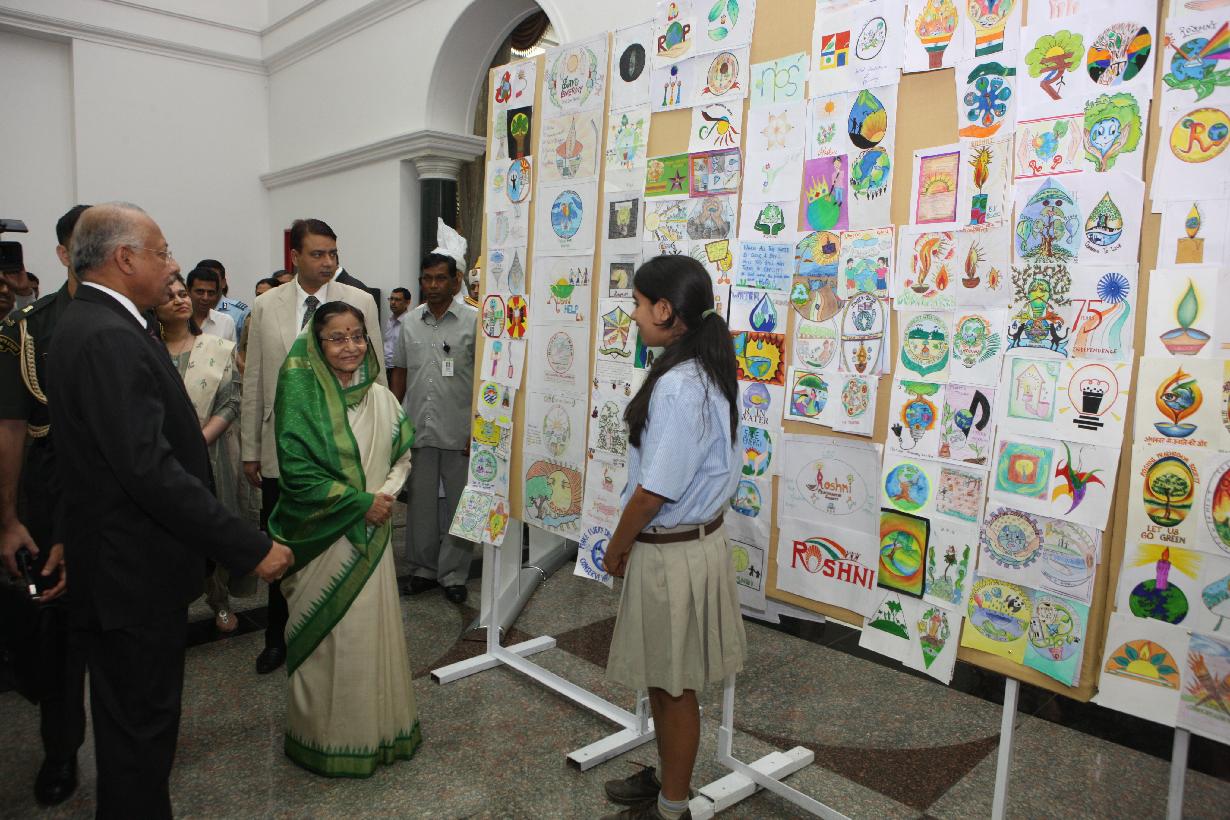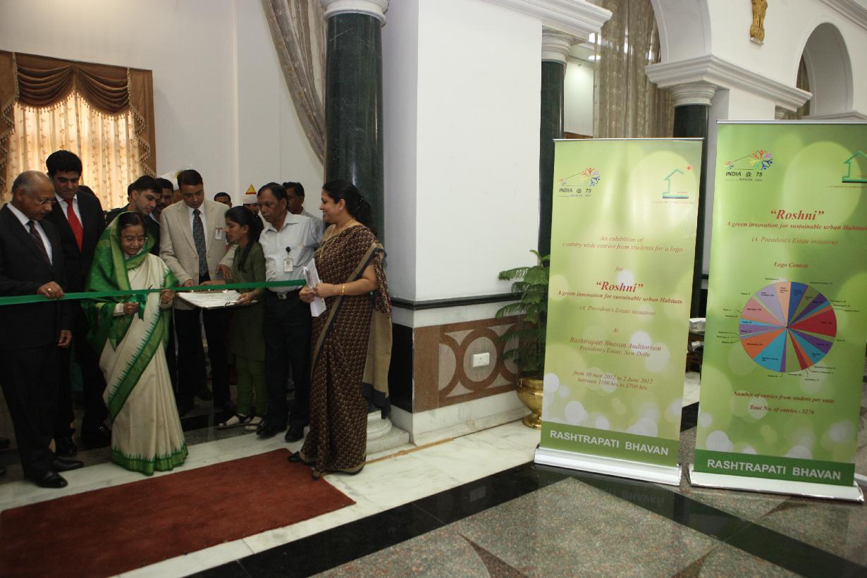 | Caption: | The President of India, Smt Pratibha Devisingh Patil inaugurating an Exhibition of County wide Entries form Students for a logo for 'Roshni' A green innovation for sustainable urban Habitats (A President s Estate initiative) at President's Estate in New Delhi on 30 May, 2012 |