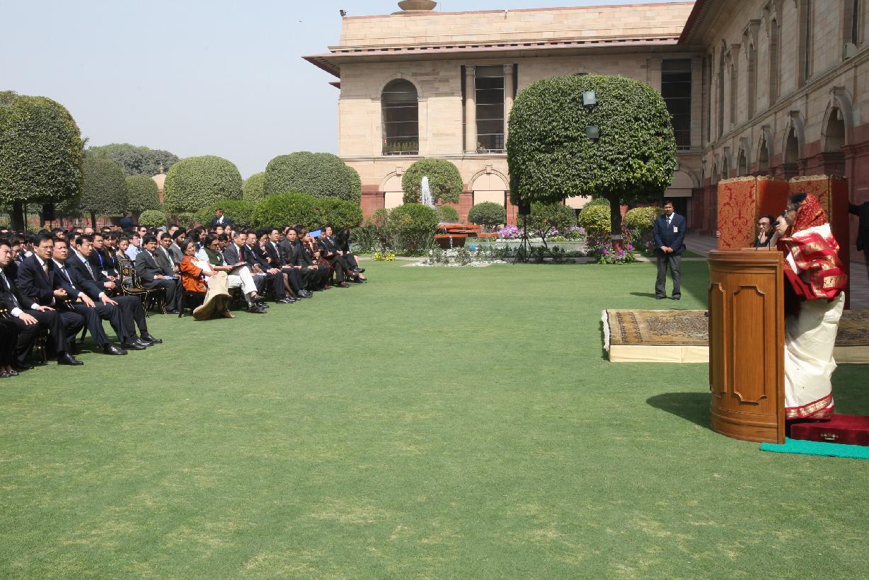 | Caption: | The President of India, Smt Pratibha Devisingh Patil interacting with the Ambassador of the People's Republic of China in India, HE Mr Zhang Yan and Senior Members of the Chinese Youth Delegation alongwith The Union Minister of State (Independent Charge) for Youth Affairs and Sports, Shri Ajay Makan at Rashtrapati Bhavan in New Delhi on Feb 27, 2012 |