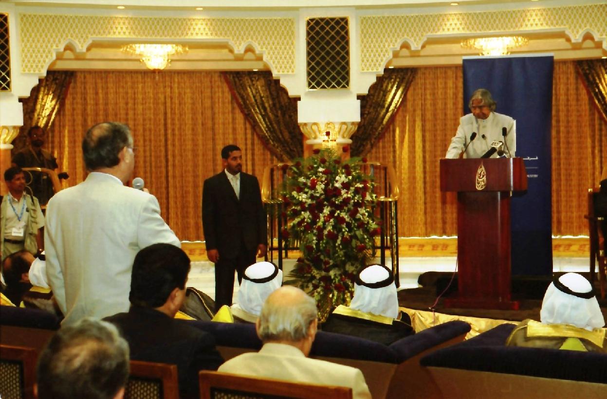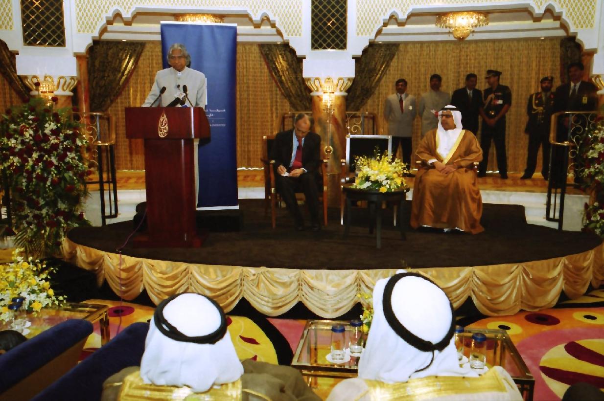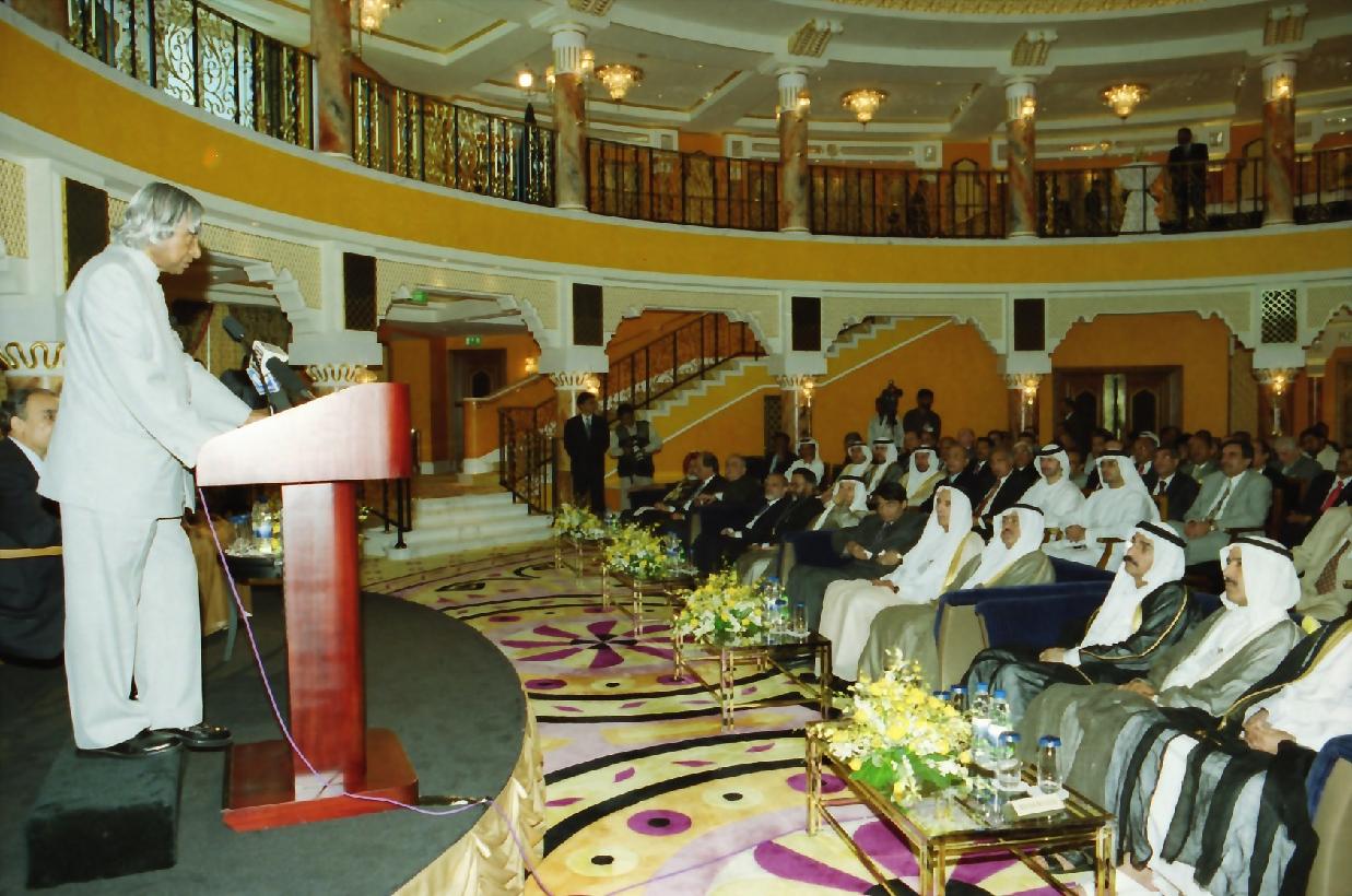 | Caption: | The President of India, Dr A P J Abdul Kalam addressing to the Members of Dubai Chamber of Commerce at Burj Al Arab in United Arab Emirates on Oct 19, 2003 |