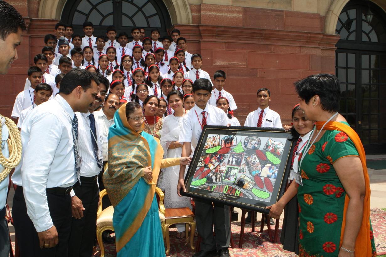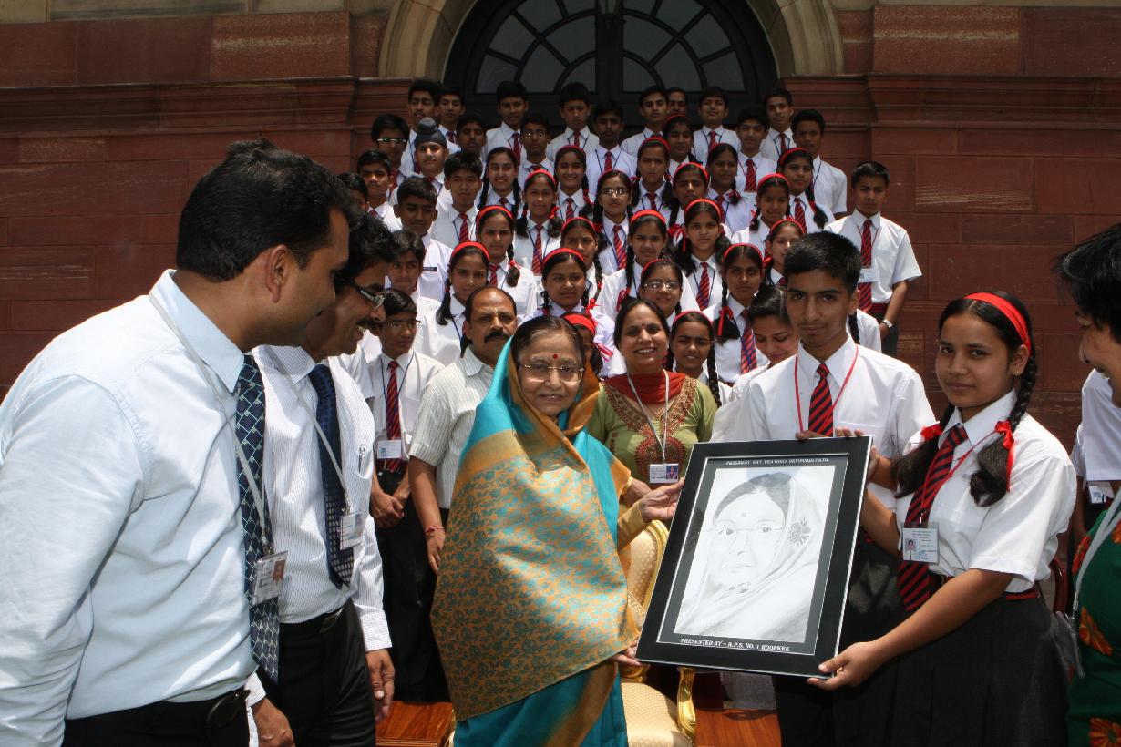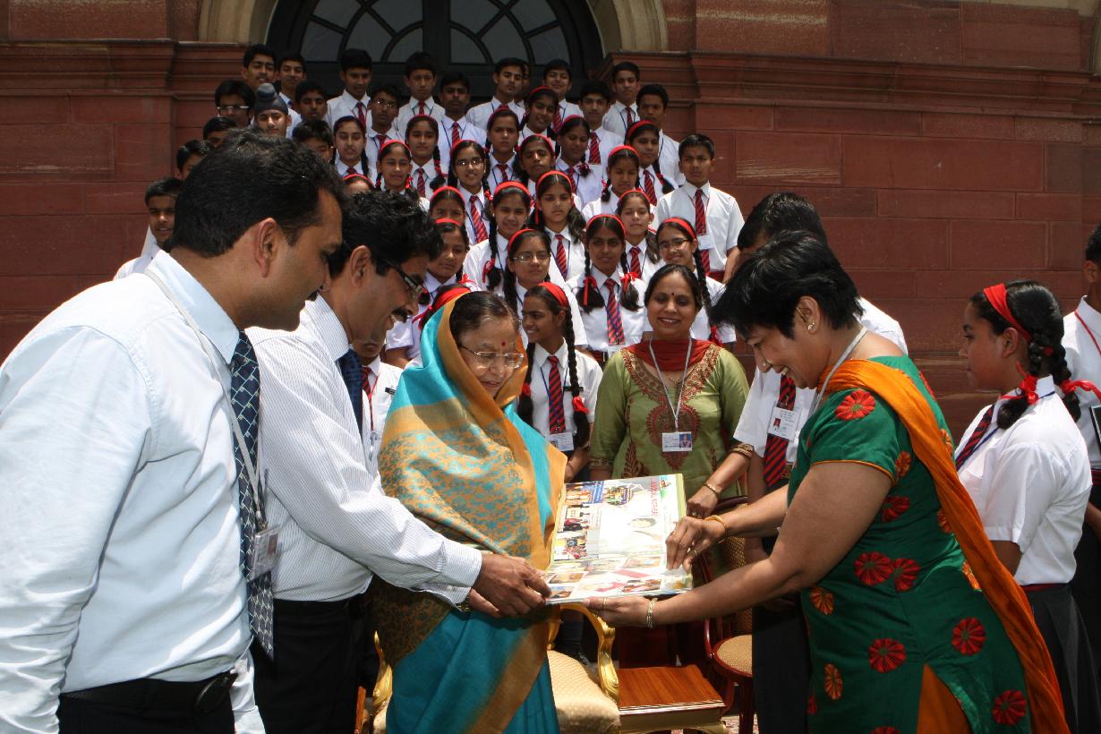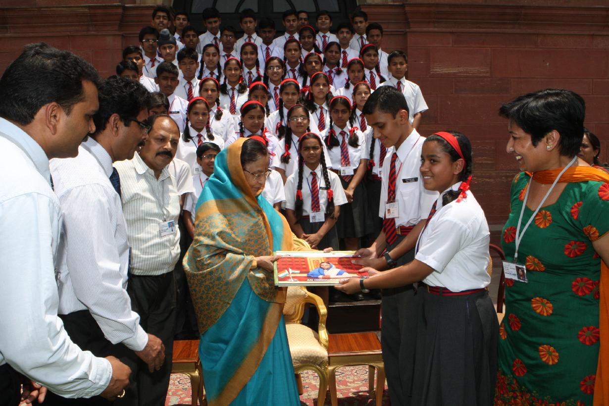 | Caption: | The President of India, Smt Pratibha Devisingh Patil interacting with the Children from Army Public School, Roorkee at Rashtrapati Bhavan in New Delhi on May 11, 2012 |