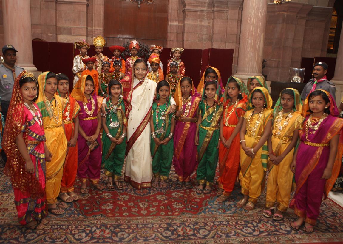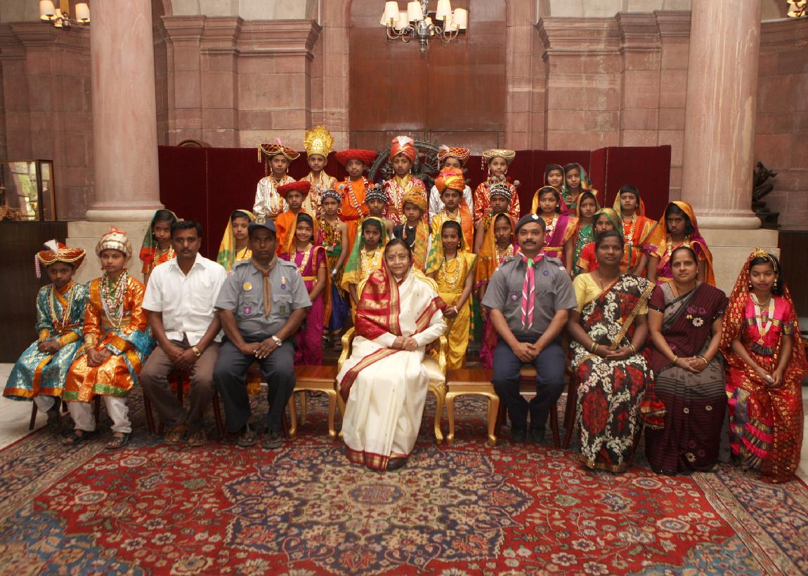 | Caption: | The President of India, Smt Pratibha Devisingh Patil interacting with Scout & Guides from Leelatai Deshchogule Prathmik Vidyamandir of Sangli District at Rashtrapati Bhavan in New Delhi on Feb 27, 2012 |