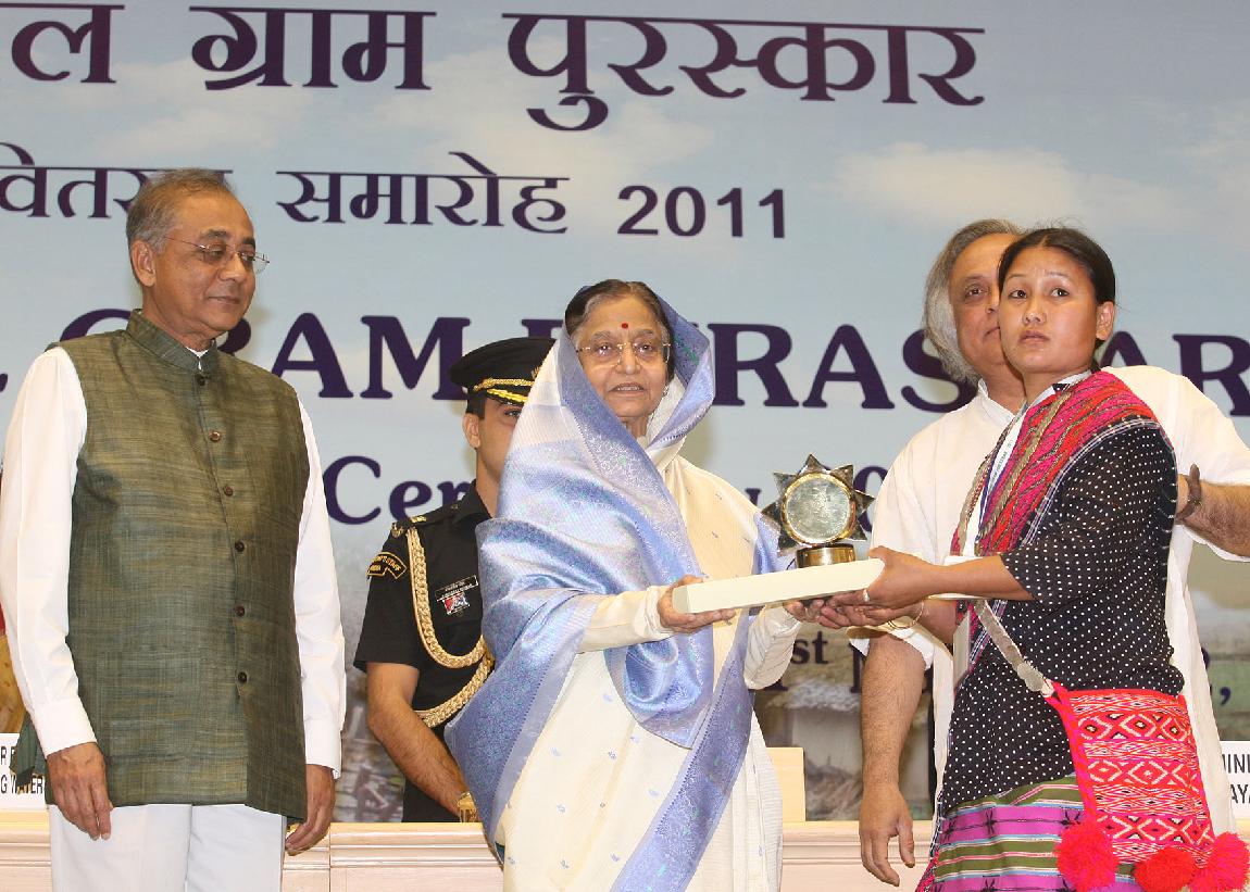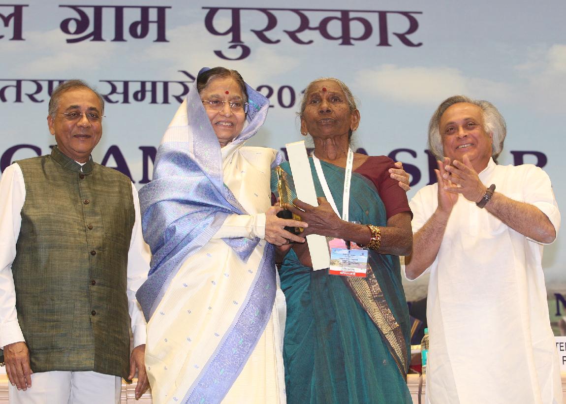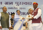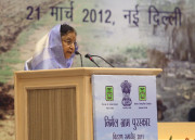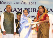 | Caption: | The President of India, Smt Pratibha Devisingh Patil presenting the Nirmal Gram Puraskar during a Presentation Ceremony at a Function at Vigyan Bhavan in New Delhi on March 21, 2012 |