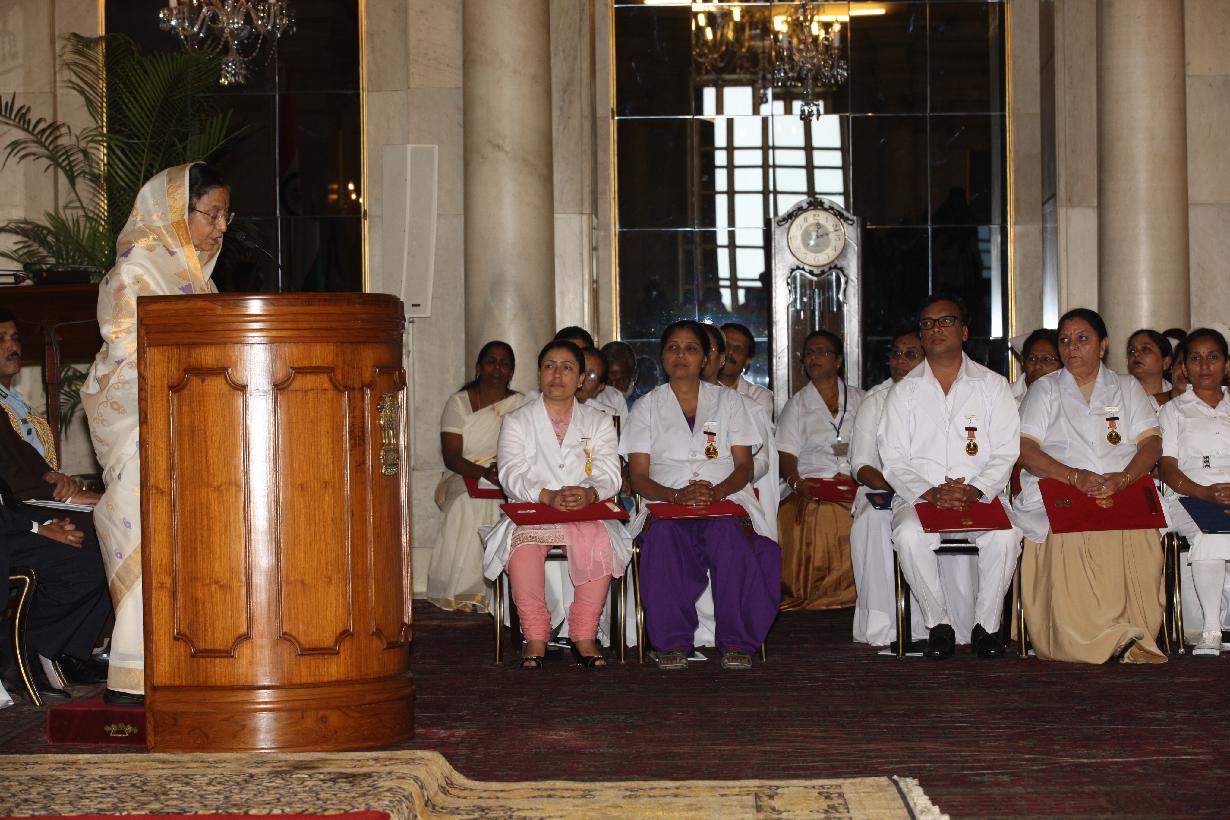 | Caption: | The President of India, Smt Pratibha Devisingh Patil presenting the National Florence Nightingale Nurses Awards 2012 on the occasion of International Nurses Day at a Programme at Rashtrapati Bhavan in New Delhi on 12 May, 2012 |