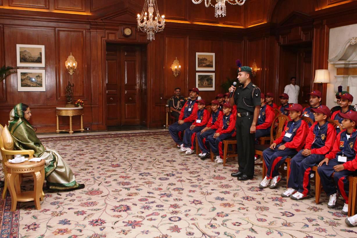| Caption: | The President of India, Smt Pratibha Devisingh Patil interacting with the Children from Jammu & Kashmir Under 'Operation Sadbhavana' Rashtrapati Bhavan in New Delhi on Nov 13, 2010 |