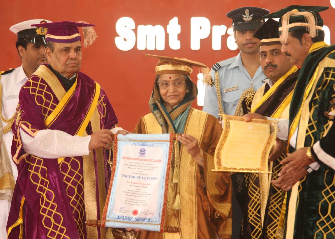 | Caption: | The President of India, Smt Pratibha Devisingh Patil during Conferred the Degree of D Litt Honoris Causa at the Special Convocation of the North Maharashtra University at Jalgaon by the Chancellor of the University and the Governor of Maharashtra, Shri K Sankaranarayanan and the Vice Chancellor, Prof Sudhir U Meshram at Jalgaon in Maharashtra on March 24, 20122 |